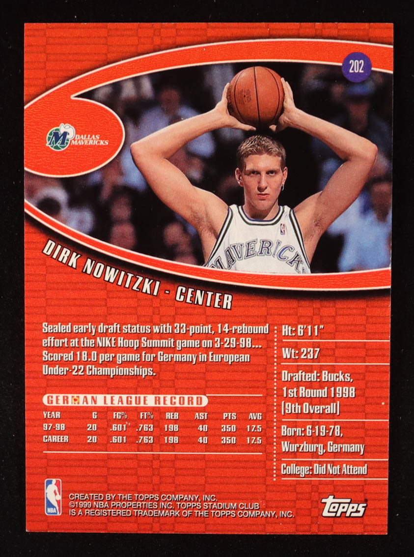 Dirk Nowitzki 1998-99 Stadium Club #202 RC