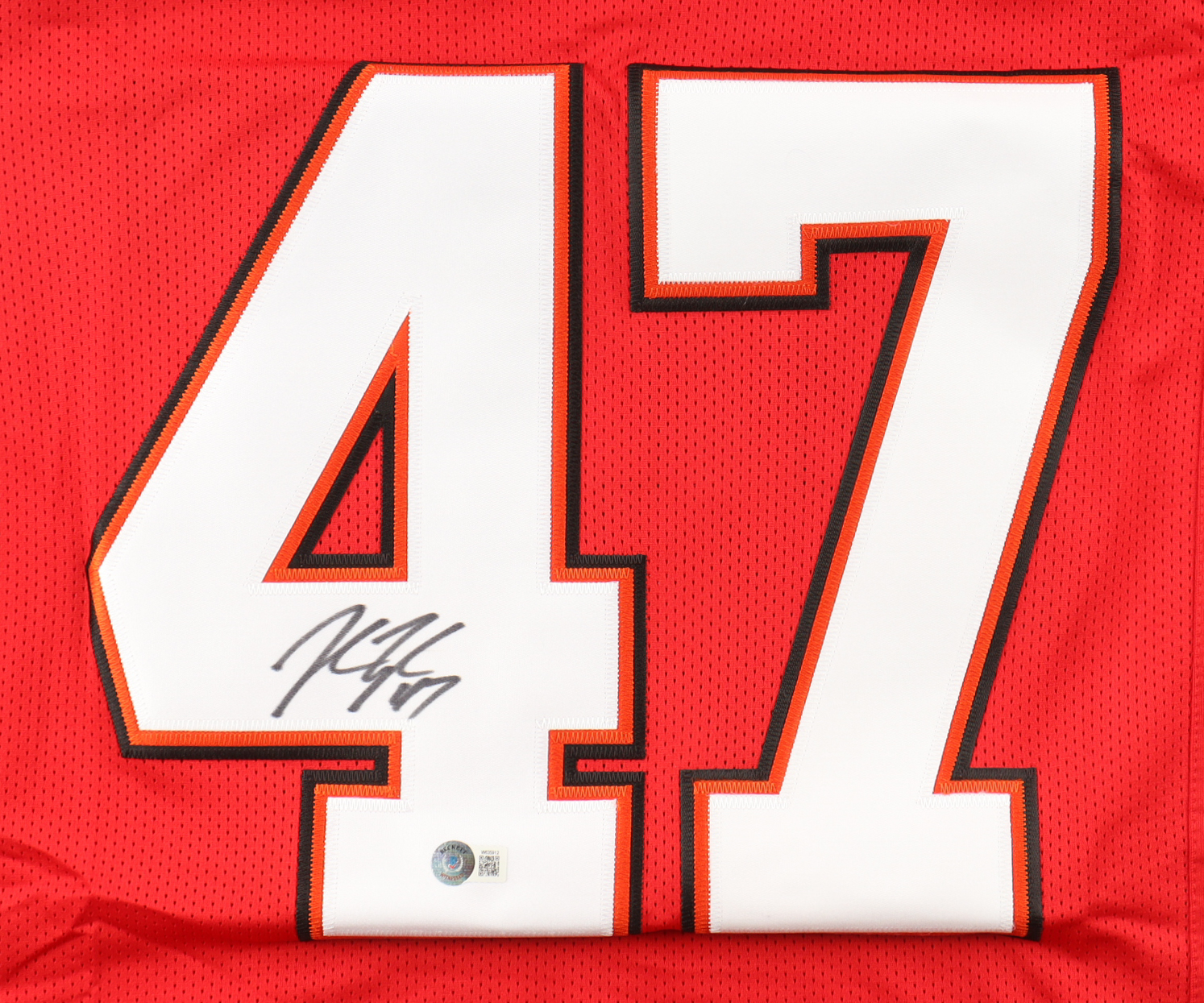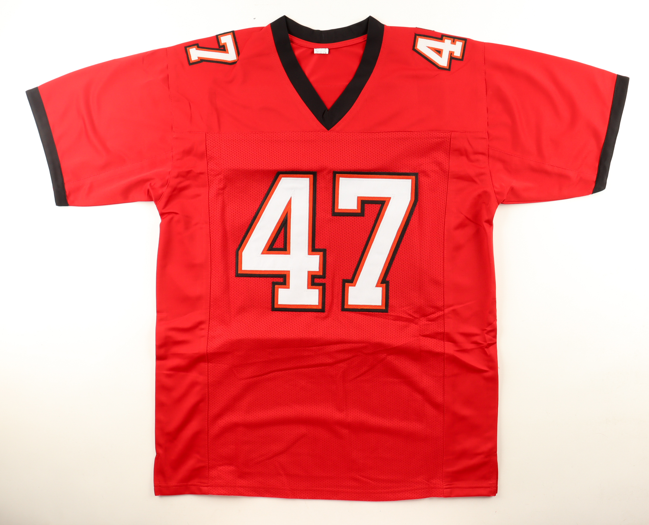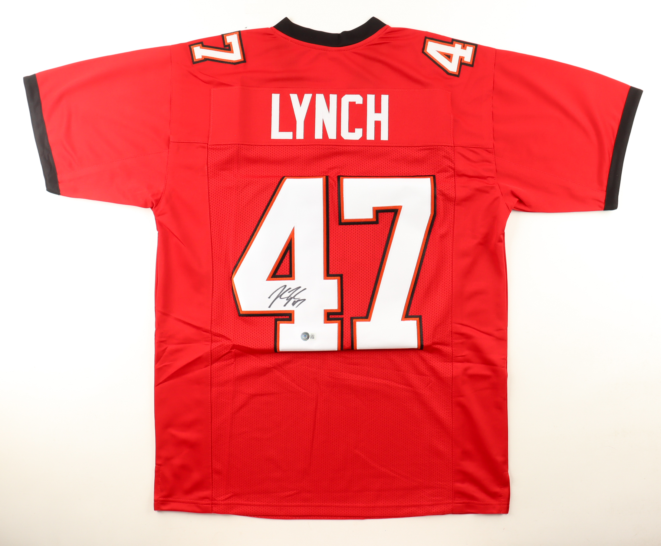 Custom jersey with everything sewn on, size XL. Hand-signed by John Lynch (HOF).
