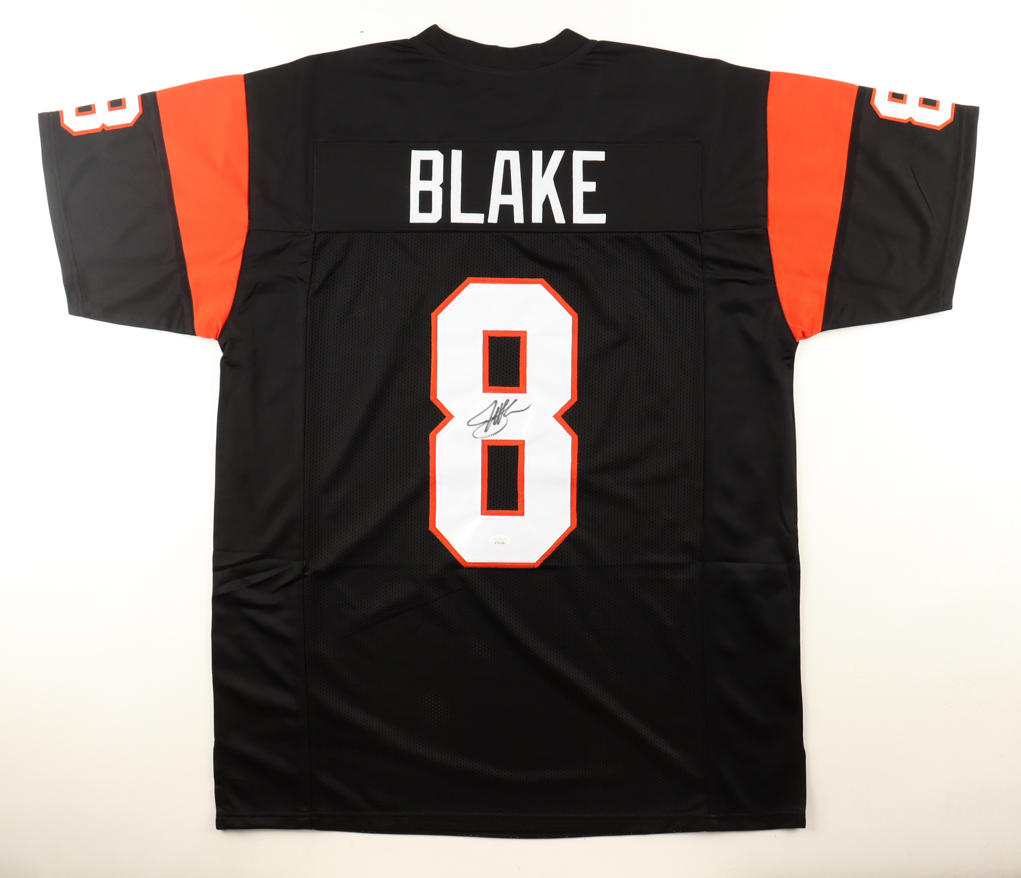Custom jersey with everything sewn on, size XL. Hand-signed by Jeff Blake (Cincinnati Bengals).