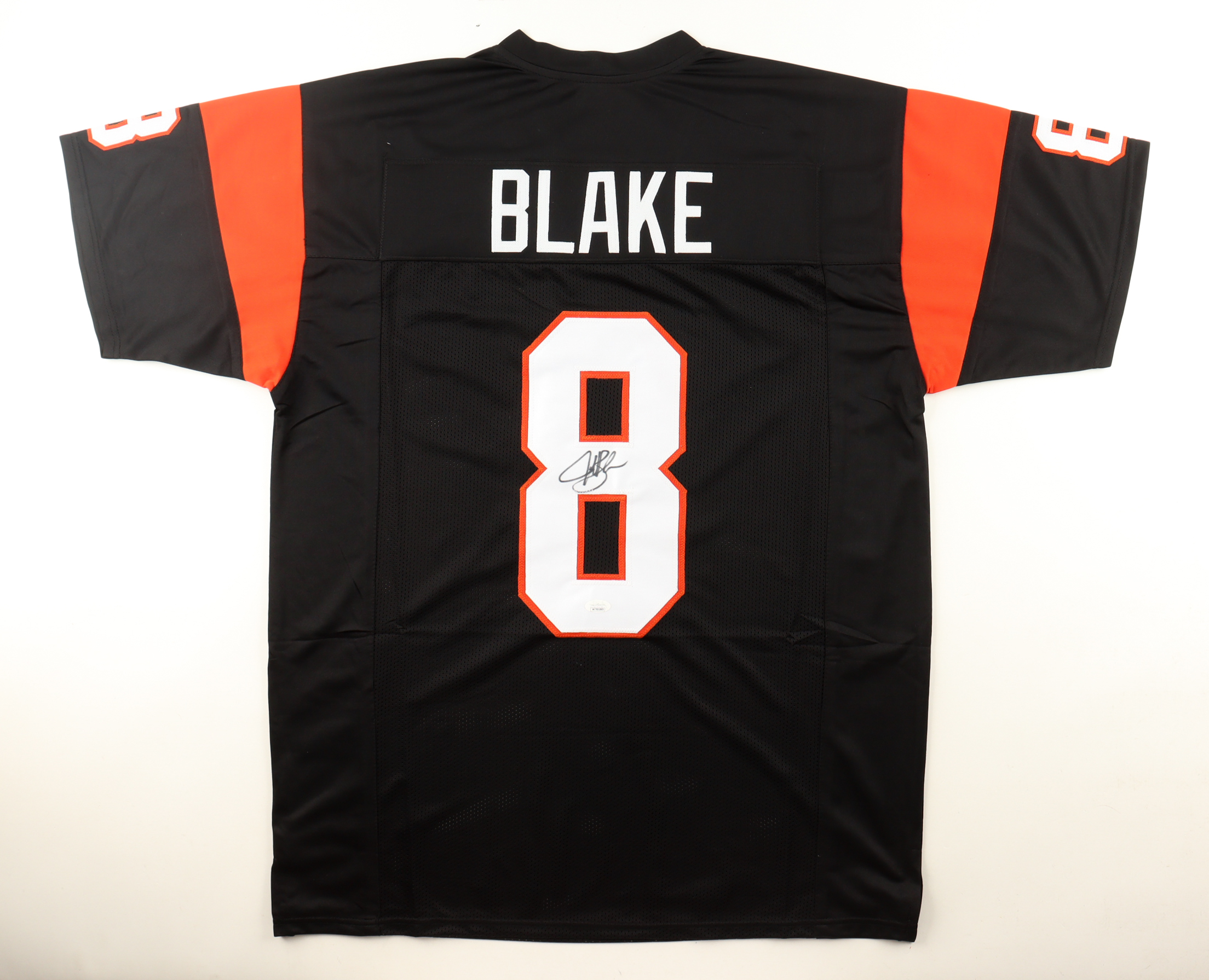 Custom jersey with everything sewn on, size XL. Hand-signed by Jeff Blake (Cincinnati Bengals).