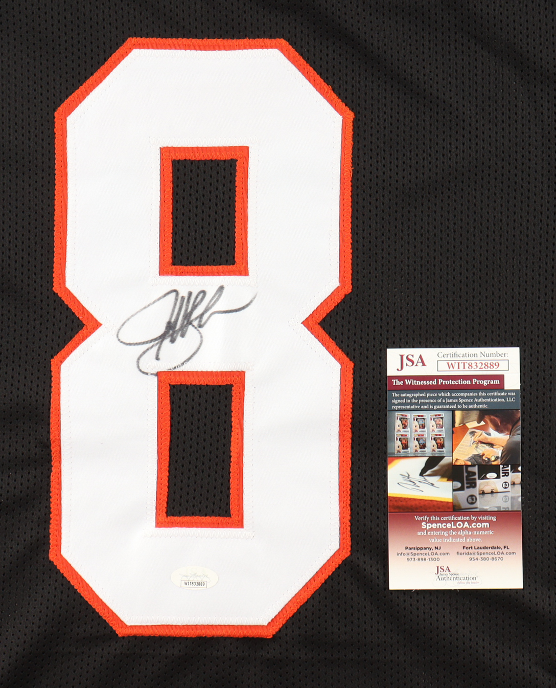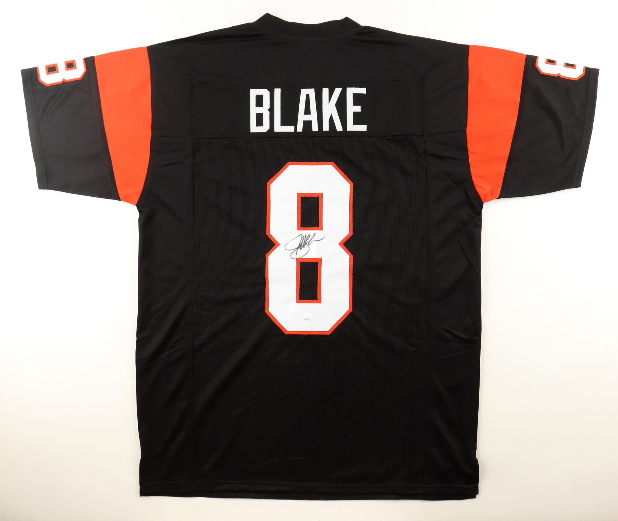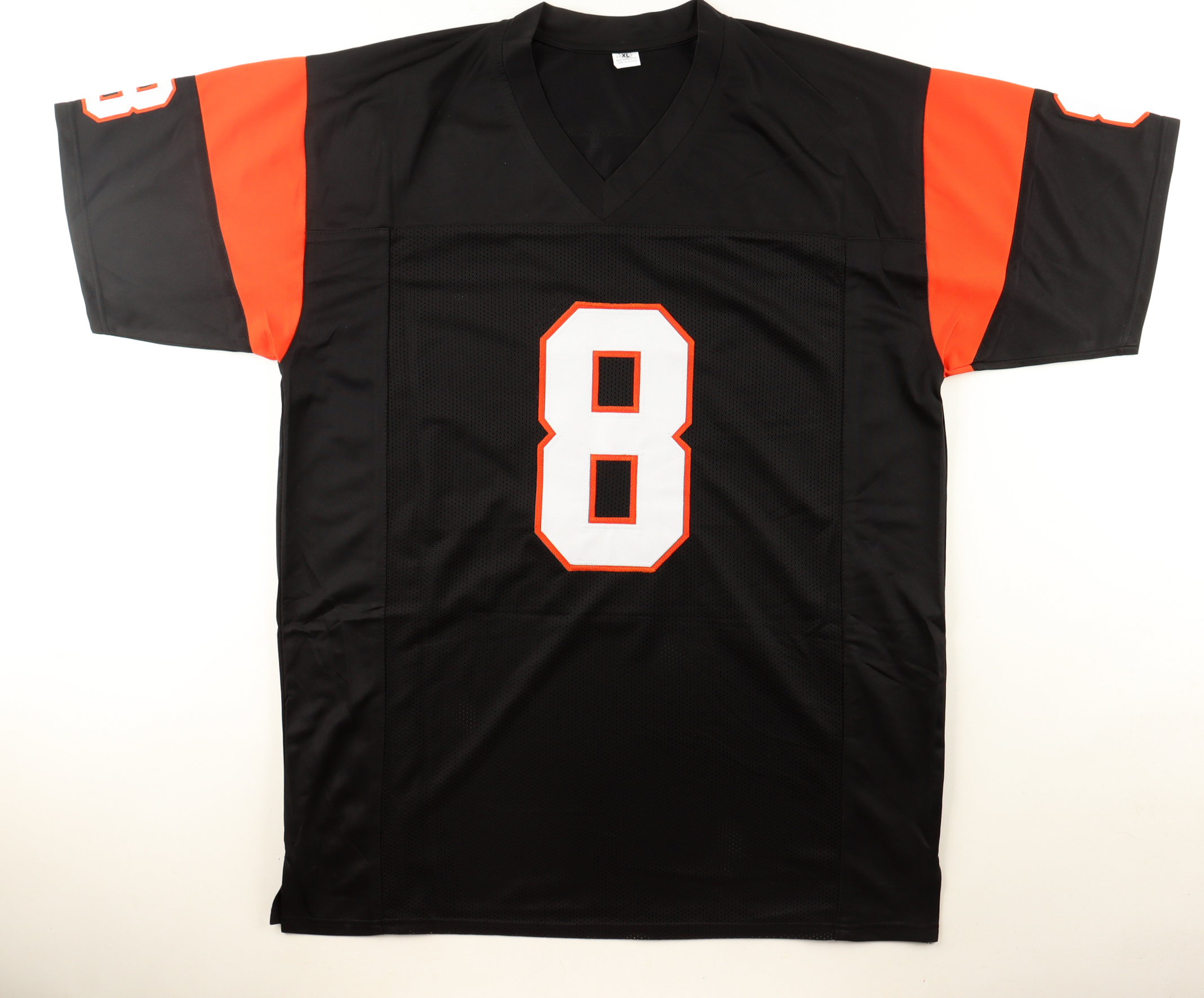 Custom jersey with everything sewn on, size XL. Hand-signed by Jeff Blake (Cincinnati Bengals).