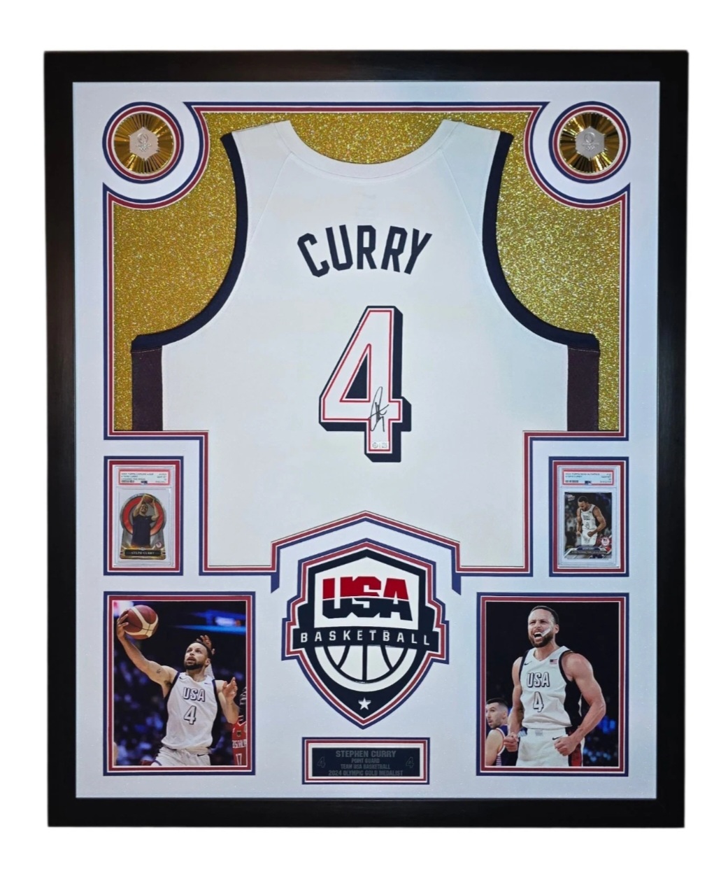 Custom display measures 33" x 42" in size and features an authentic Nike Swingman jersey that has been hand-signed by Stephen Curry (Team USA).