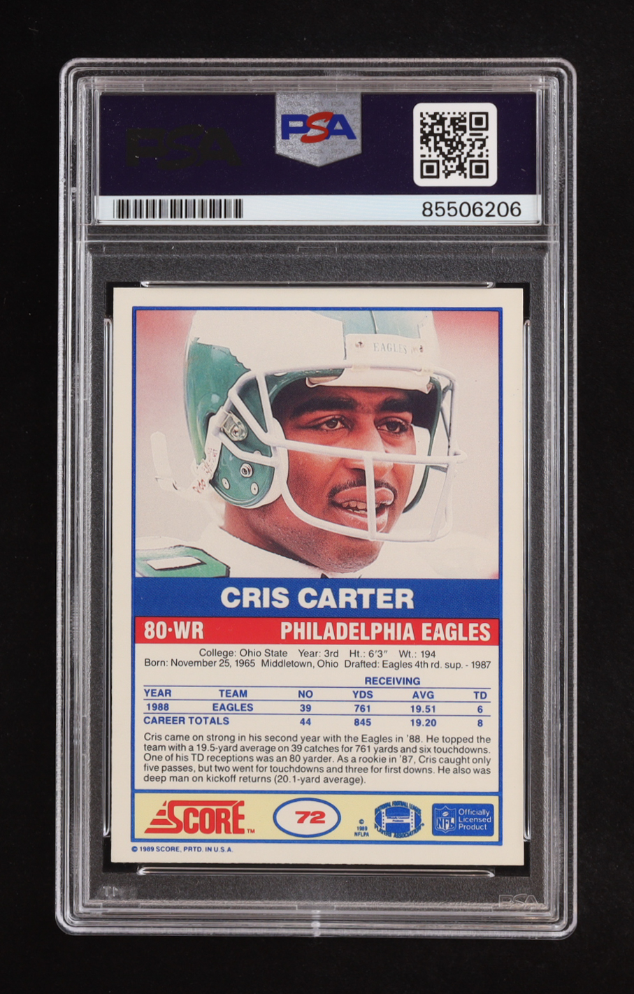 Cris Carter Signed 1989 Score #72 RC (PSA | Auto Grade PSA Authentic)