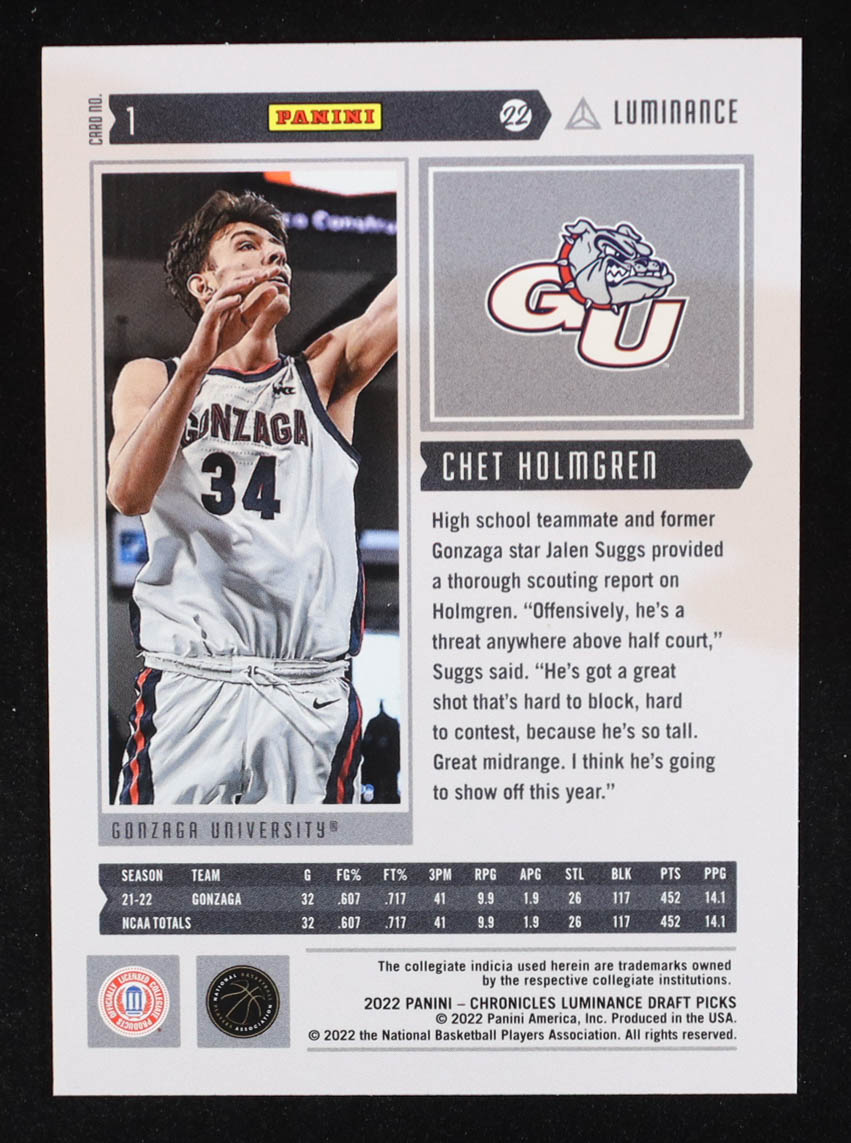 Chet Holmgren 2022-23 Panini Chronicles Draft Picks Luminance #1 RC