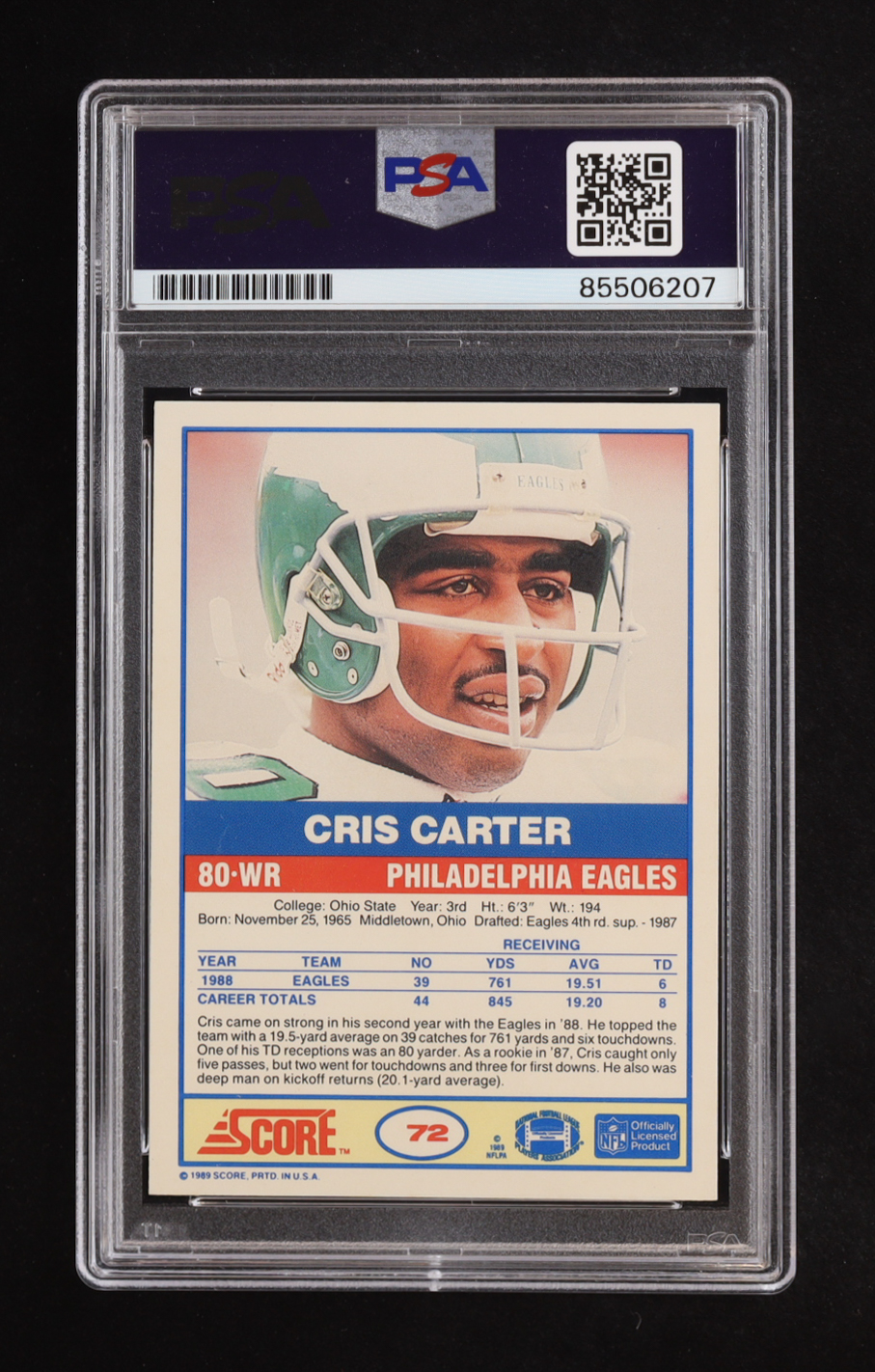 Cris Carter Signed 1989 Score #72 RC (PSA | Auto Grade PSA Authentic)