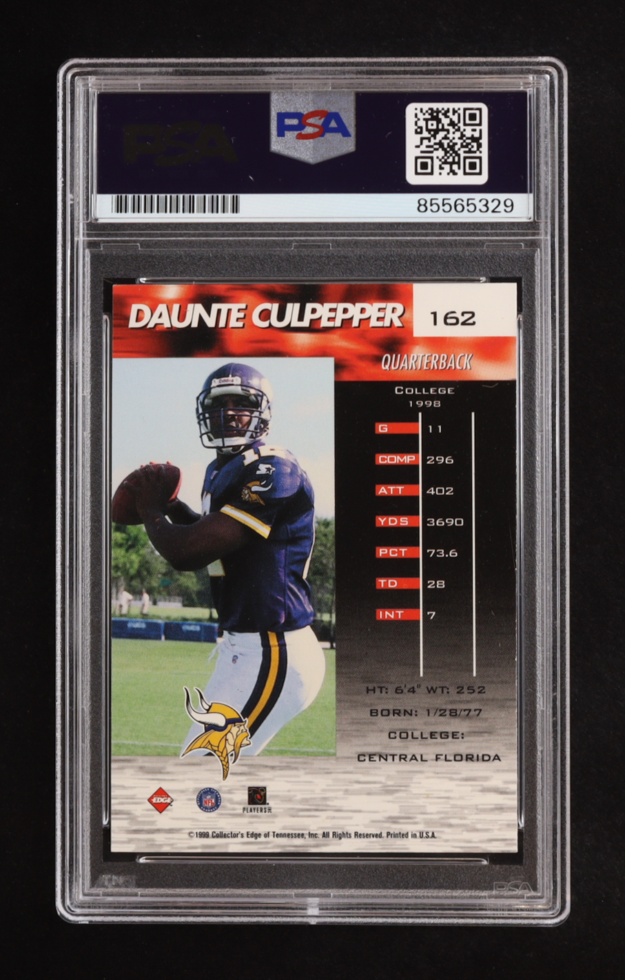 Daunte Culpepper 1999 Collector's Edge Millennium Collection Fury #162 RC (PSA | Auto Grade PSA Authentic)