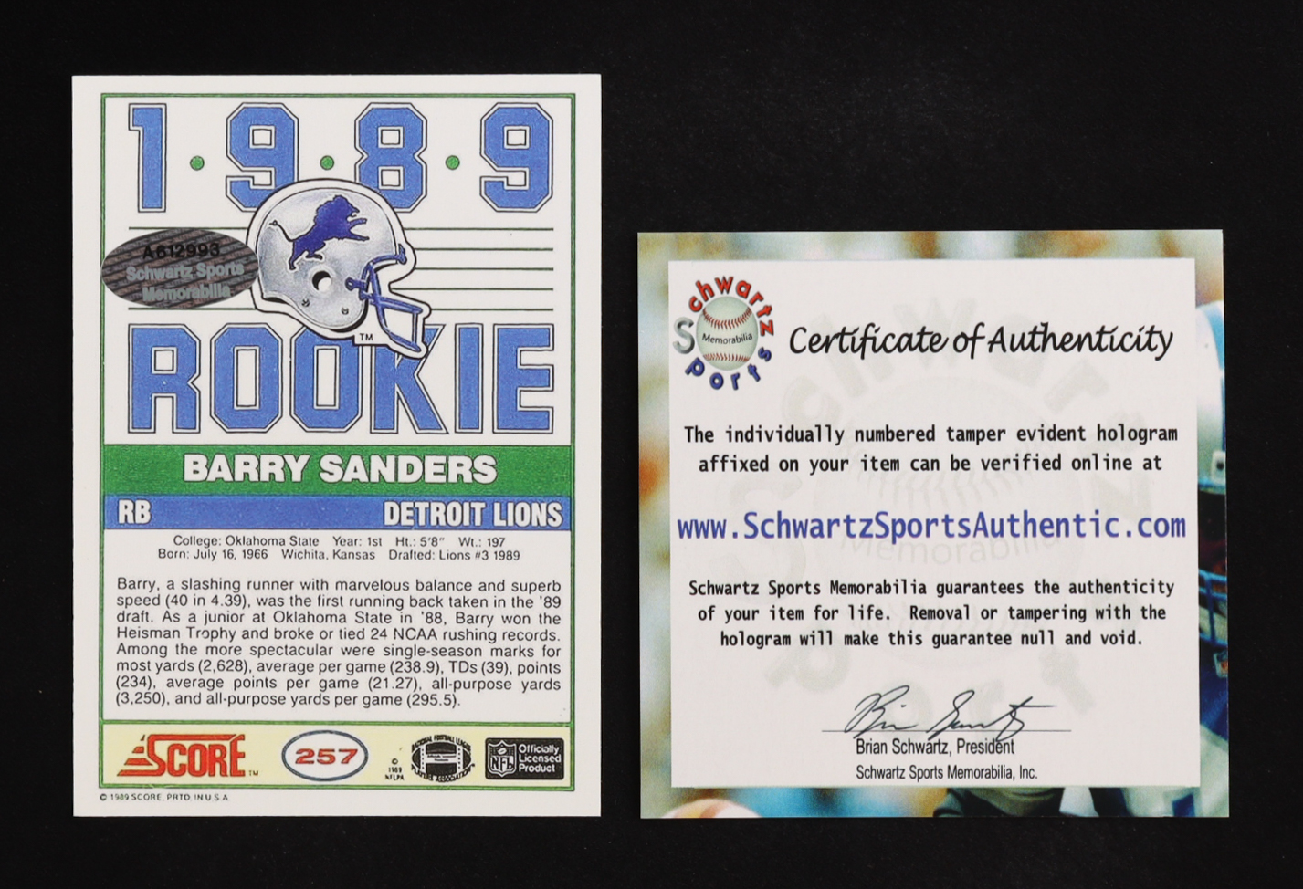 Authentication: Schwartz Sports COA