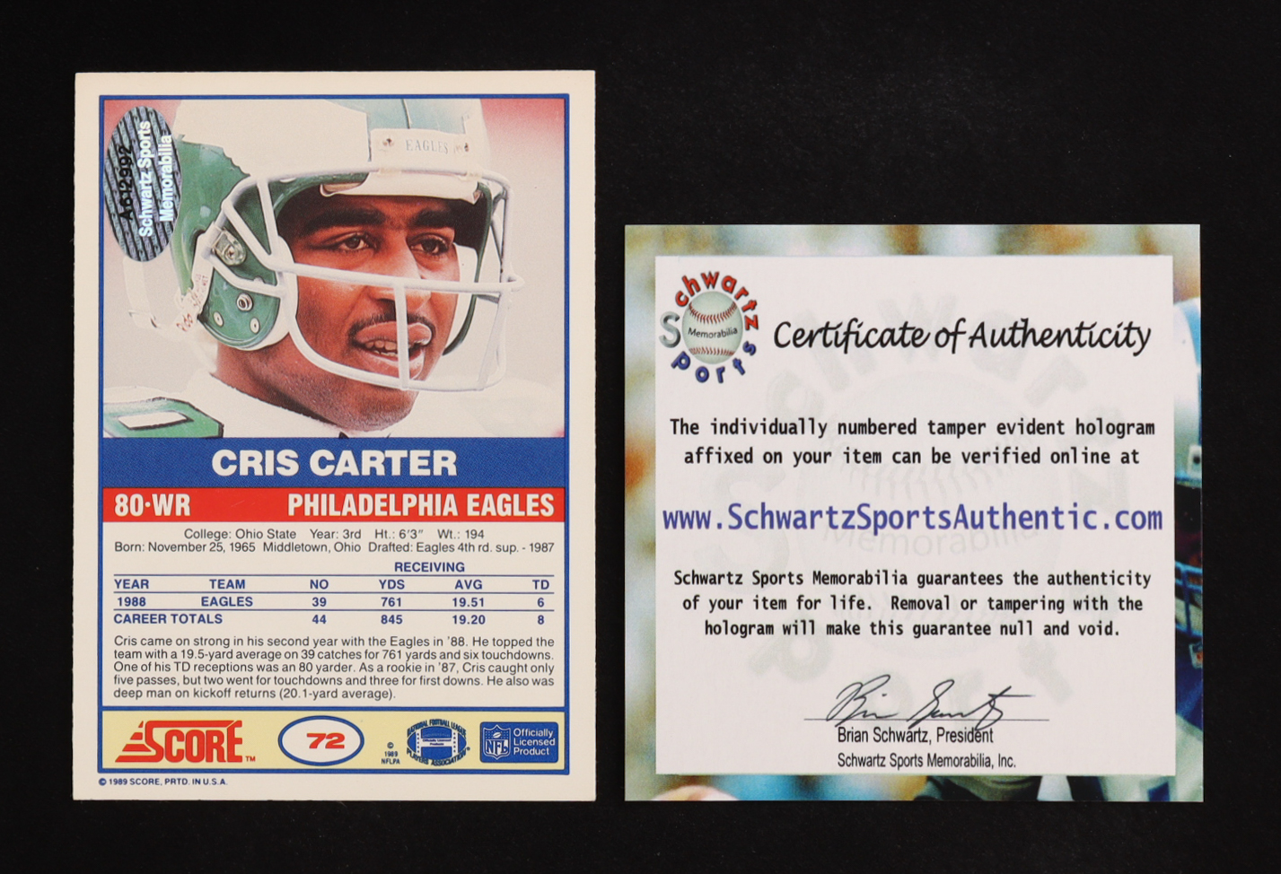 Cris Carter Signed 1989 Score #72 RC (Schwartz)