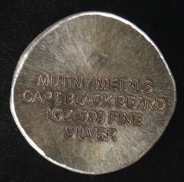 Mutiny Metals "Capt. Black Beard" 1 Ounce .999 Fine Silver Bullion Round