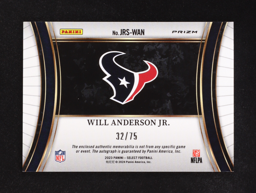Will Anderson Jr. 2023 Select Jumbo Rookie Signature Swatches Prizm White #1 RC #32/75