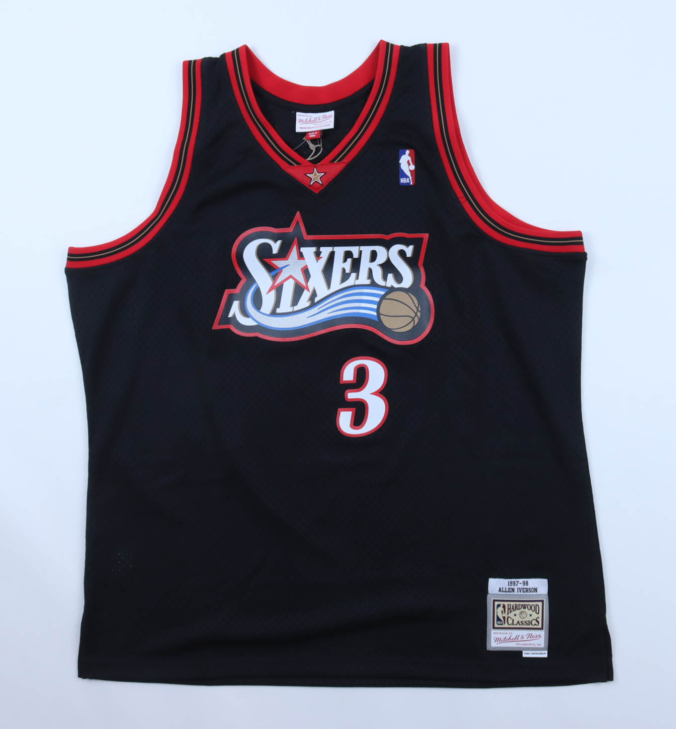 Mitchell & Ness jersey with everything pressed on, size 2XL. Hand-signed by Allen Iverson (Philadelphia 76ers, HOF).