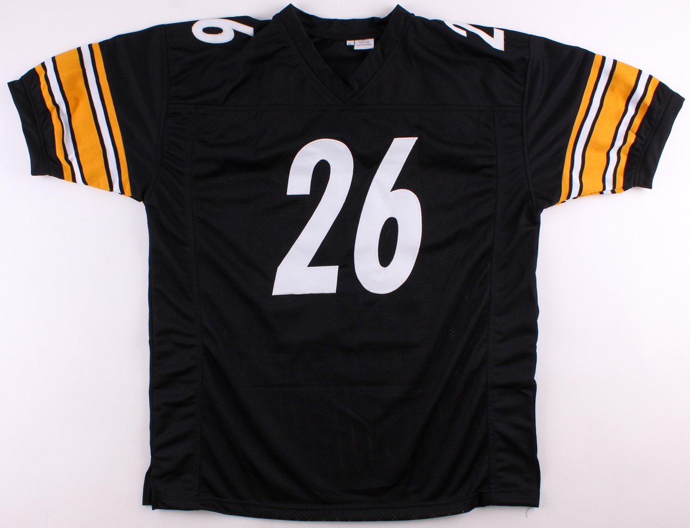 Custom on-field style jersey. Everything is sewn on, size XL. Hand-signed in black felt-tip pen by Le'Veon Bell.