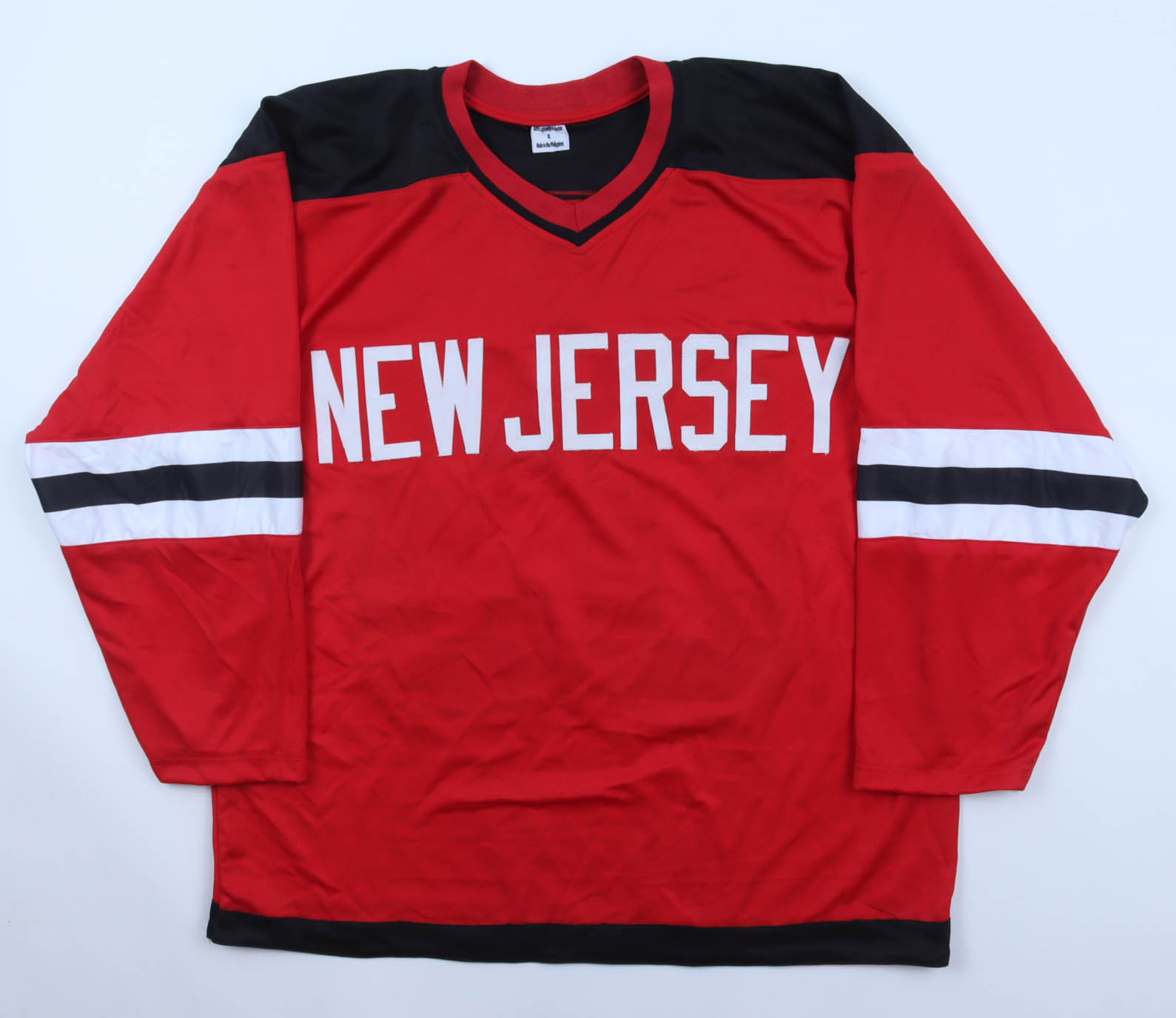 Custom jersey. Everything is sewn on, size XL. Hand-signed by (17) with Martin Brodeur, Joe Nieuwendyk, Patrik Elias, Scott Stevens, Scott Niedermayer, Ken Daneyko, Sergei Brylin, Jiri Bicek, Scott Gomez, Brian Gionta, Grant, Marshall, Tommy Albelin, Jamie Langenbrunner, Mike Rupp, Brian Rafalski, Colin White, & Turner Stevenson. Please note, there is staining on the reverse number and some signatures have bled.