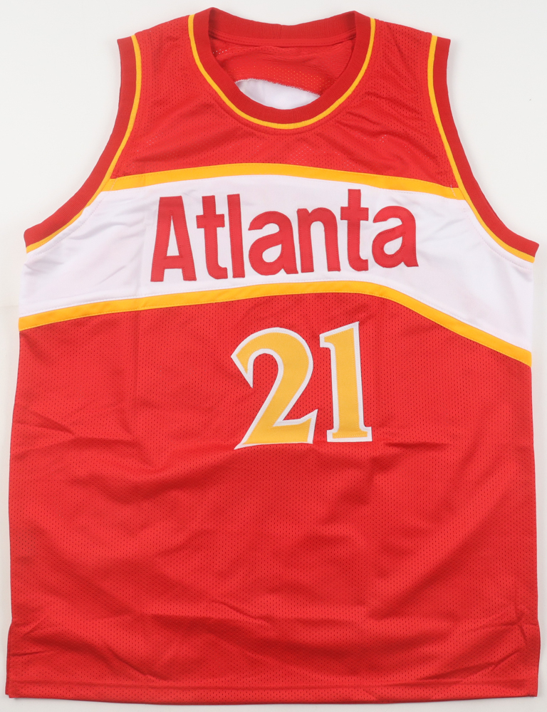Custom jersey with everything sewn on, size XL. Hand-signed by Dominique Wilkins (HOF).