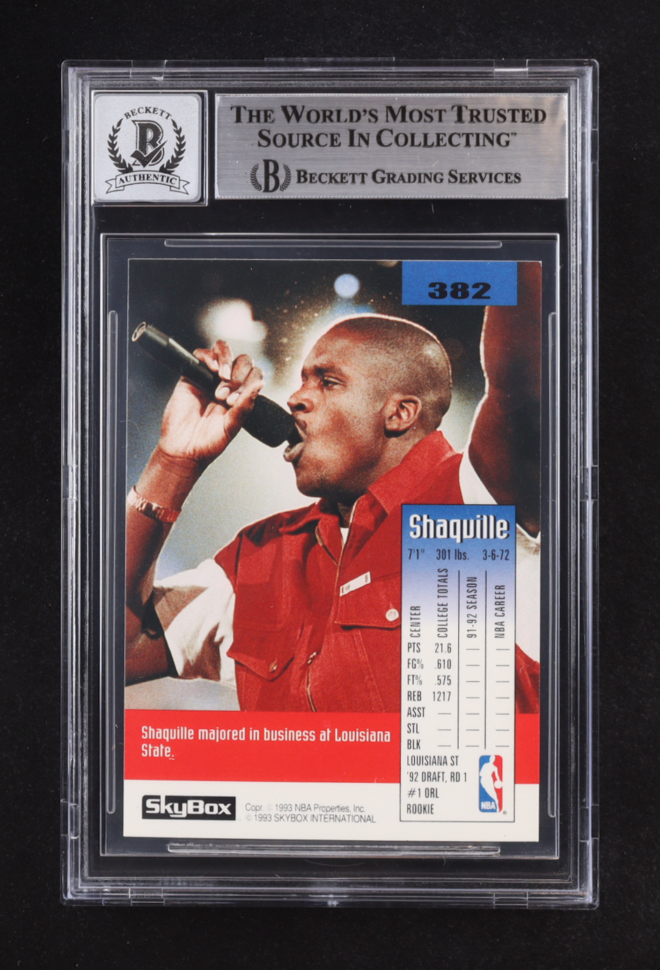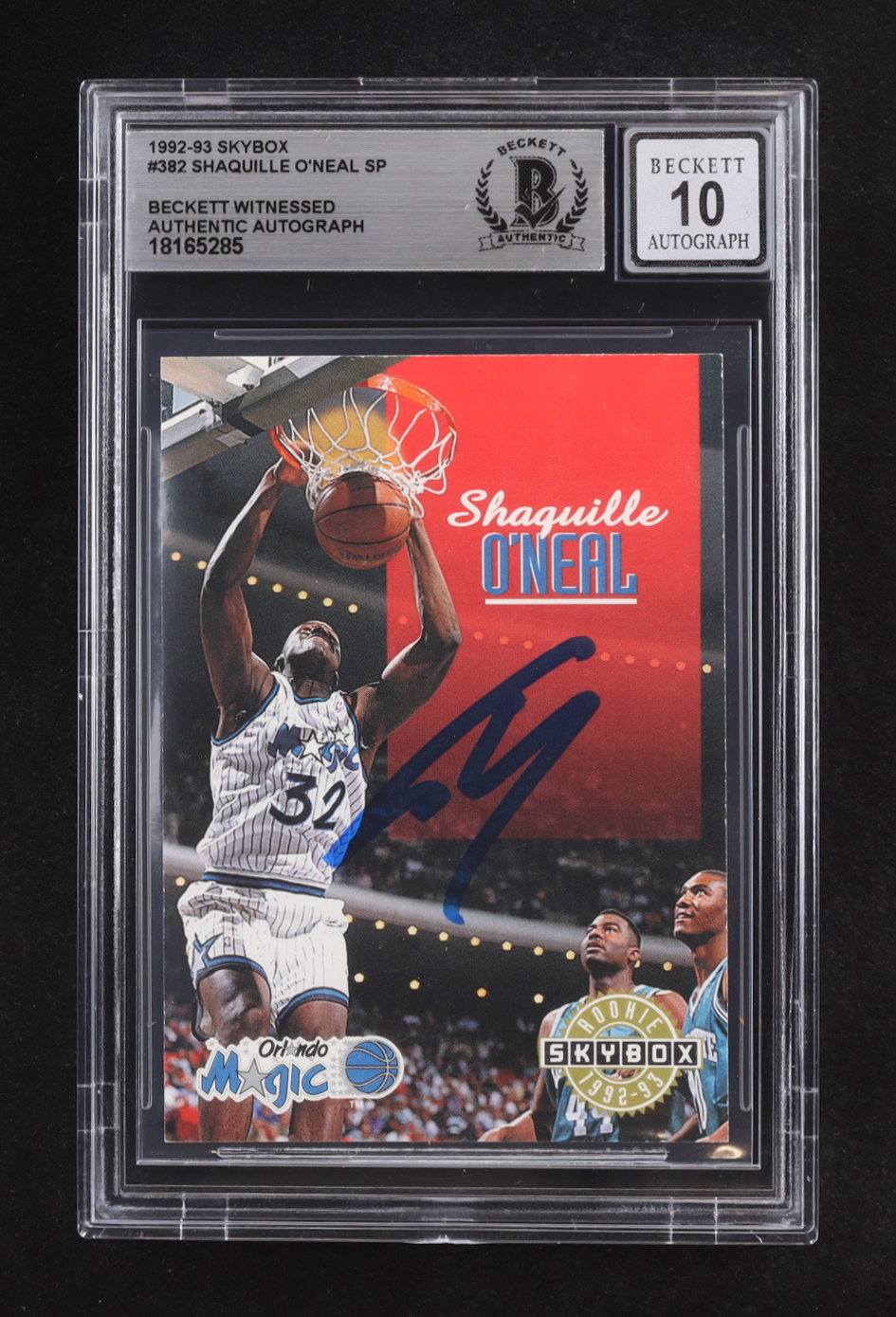 Shaquille O'Neal Signed 1992-93 SkyBox #382 SP RC (Beckett | Auto Grade BGS 10)