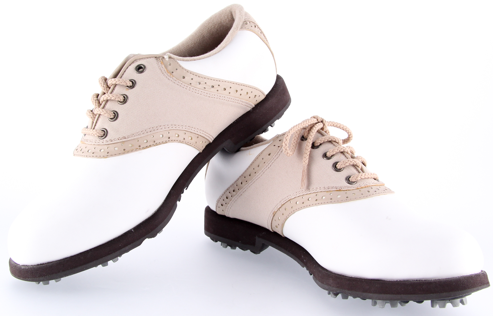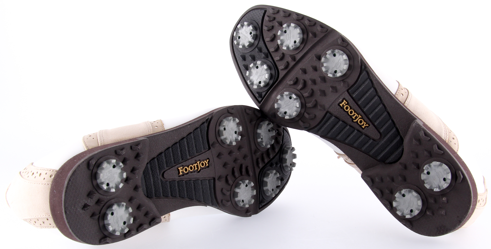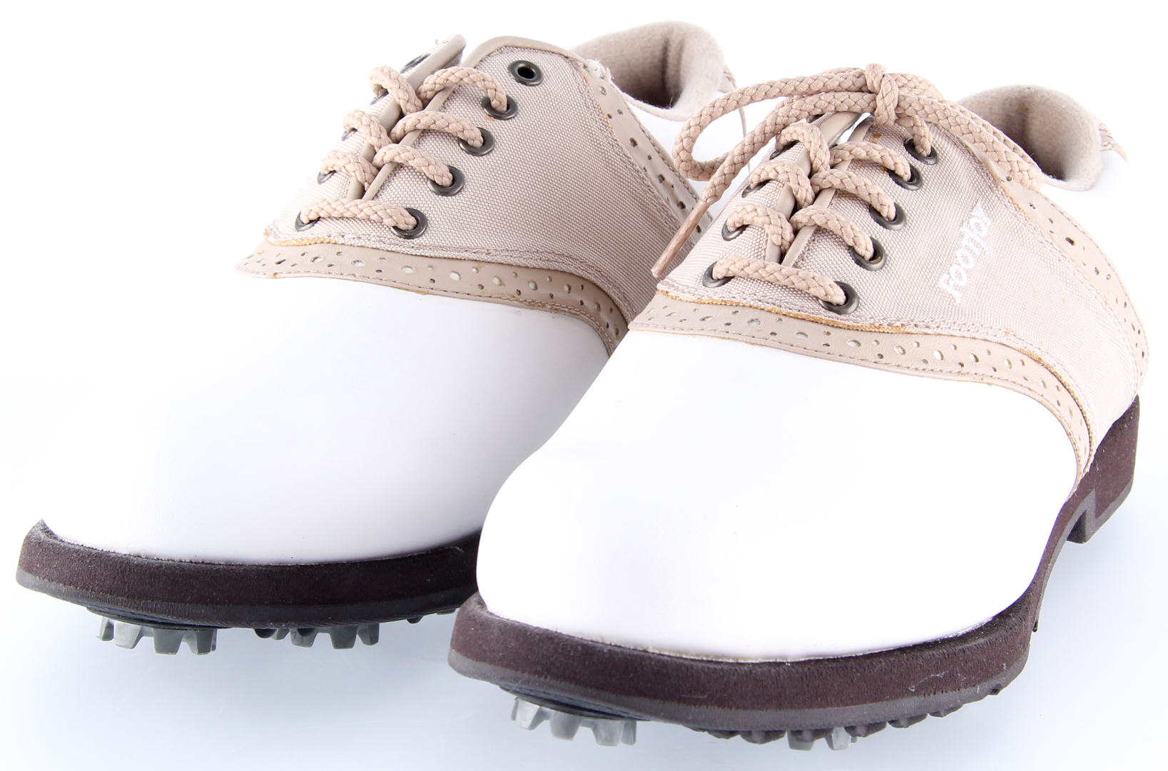 Pair of FootJoy golf shoes. (1) shoe has been hand-signed in blue felt-tip pen by Michelle Wie (LPGA). Please note, the signature has bled.