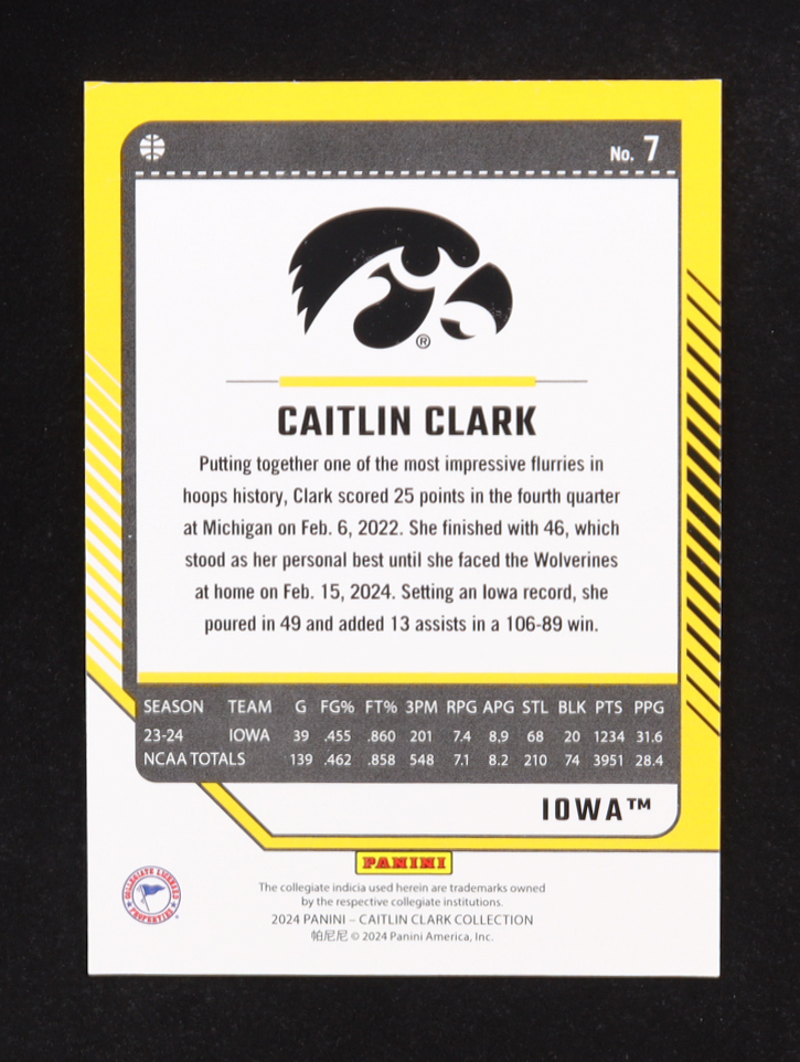 Caitlin Clark 2024 Panini Collection Donruss #7 RC