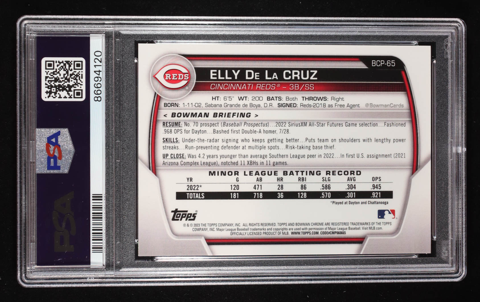 Elly De LA Cruz 2023 Bowman Chrome Prospects Lava Refractors #BCP65 RC #057/399 (PSA 10)