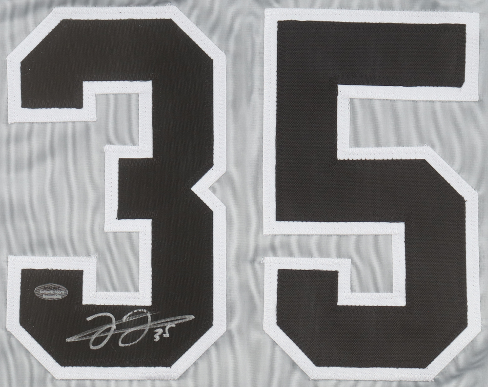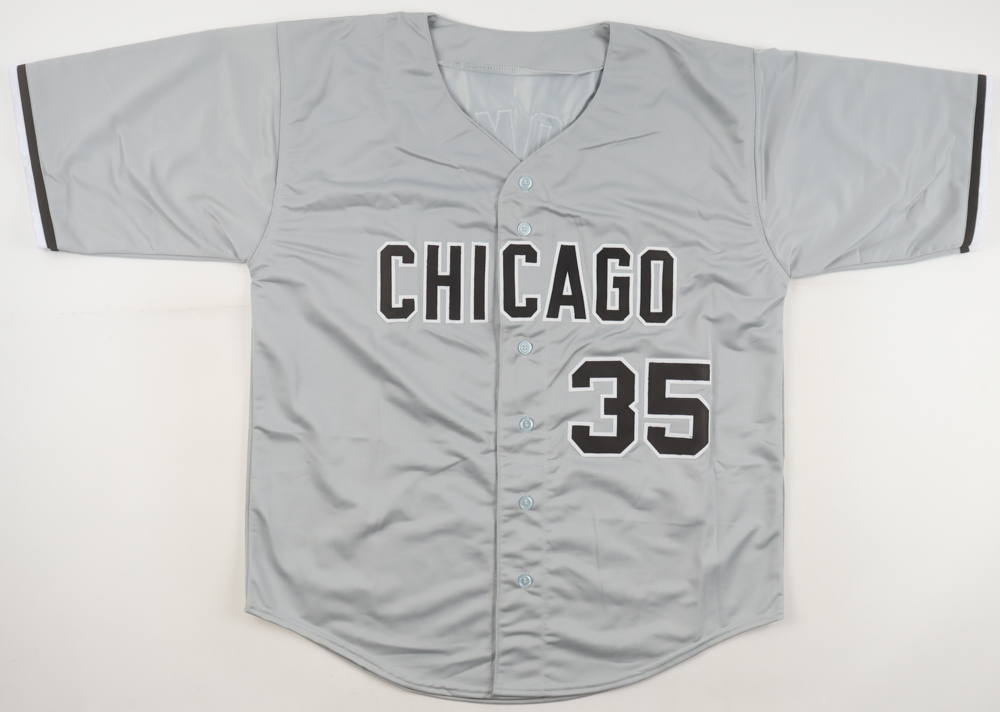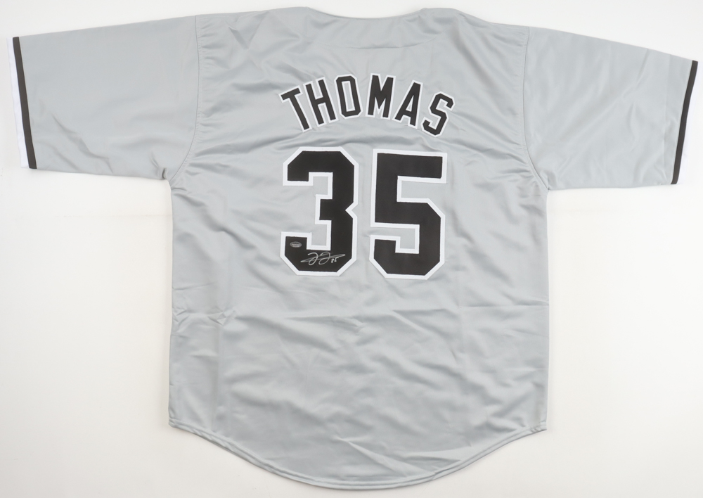 Custom jersey with everything sewn on, size XL. Hand-signed by Frank Thomas (HOF).