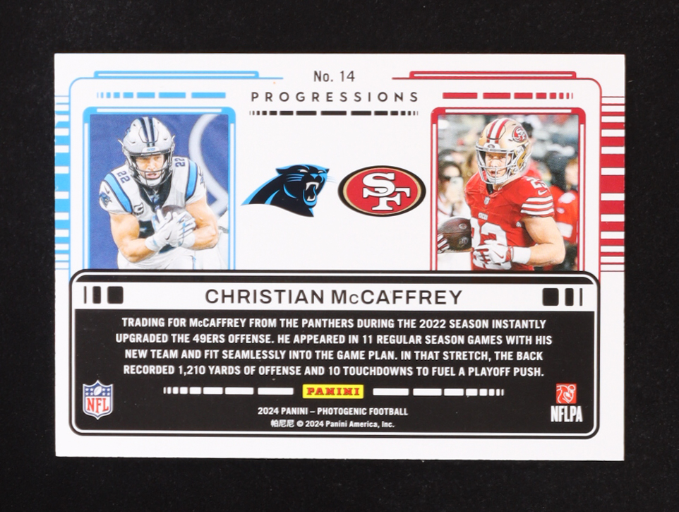Christian McCaffrey 2024 Panini PhotoGenic Progressions Blue #14 #24/99