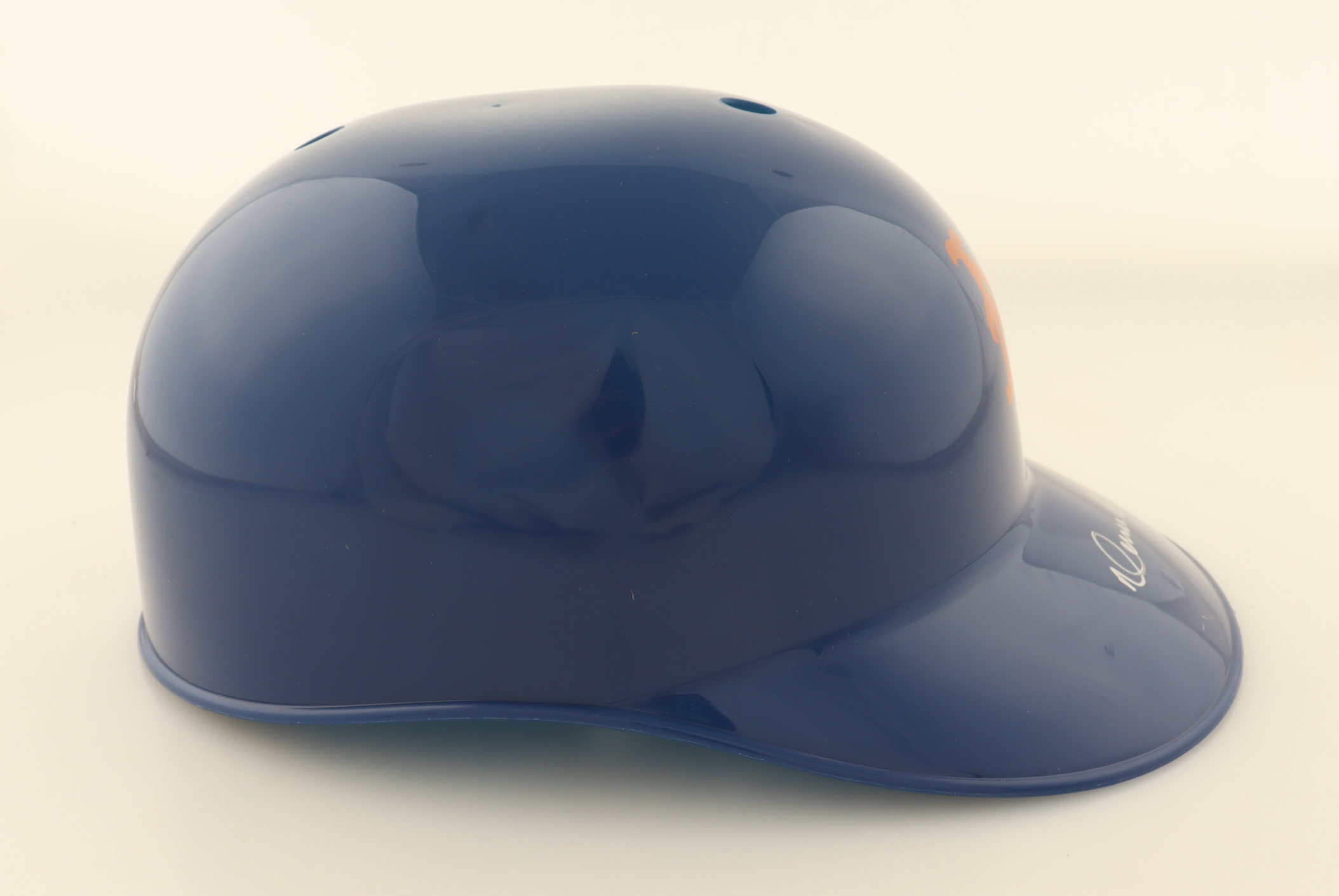 New York Mets full-size souvenir replica batting helmet. Hand-signed by Moises Alou.