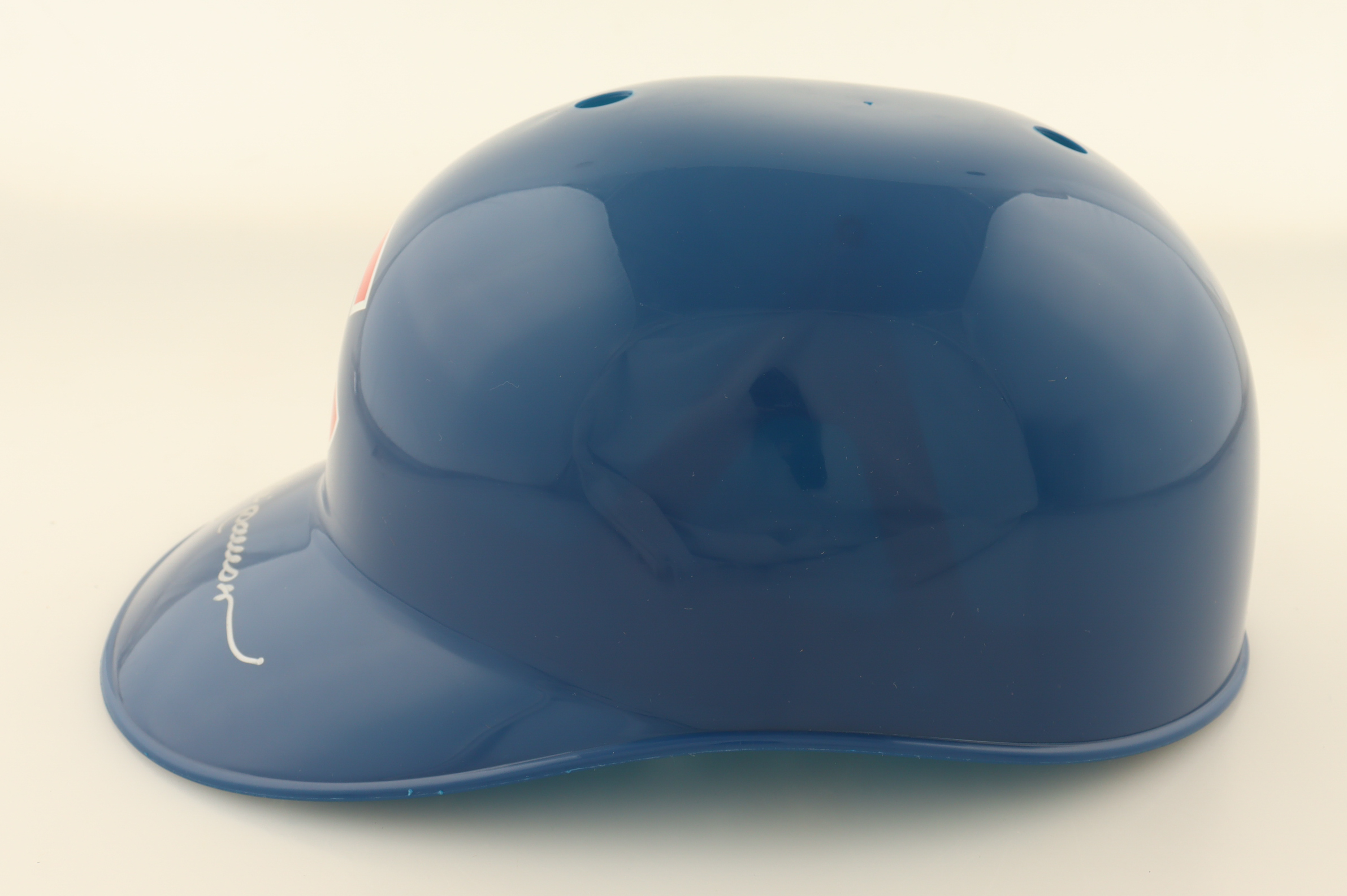 Chicago Cubs full-size plastic souvenir replica batting helmet. Hand-signed by Andre Dawson (HOF).