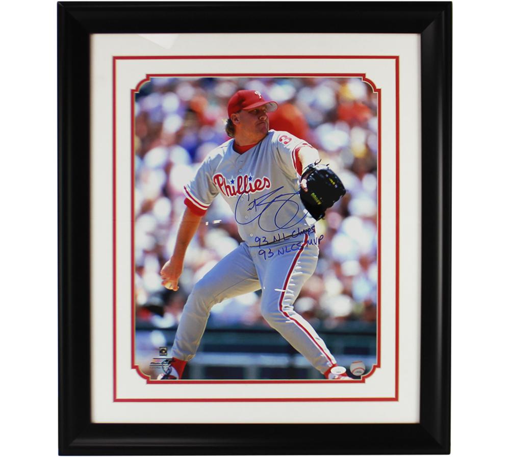 Curt Schilling Signed Phillies Custom Framed Photo Inscribed "93 NL Champs" & "93 NLCS MVP" (JSA)