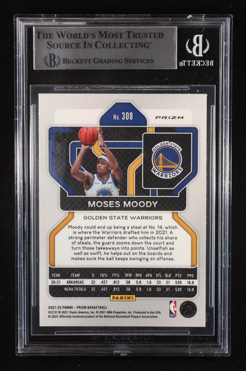 Moses Moody Signed 2021-22 Panini Prizm Prizms Silver #308 RC (Beckett | Auto Grade BGS Authentic)