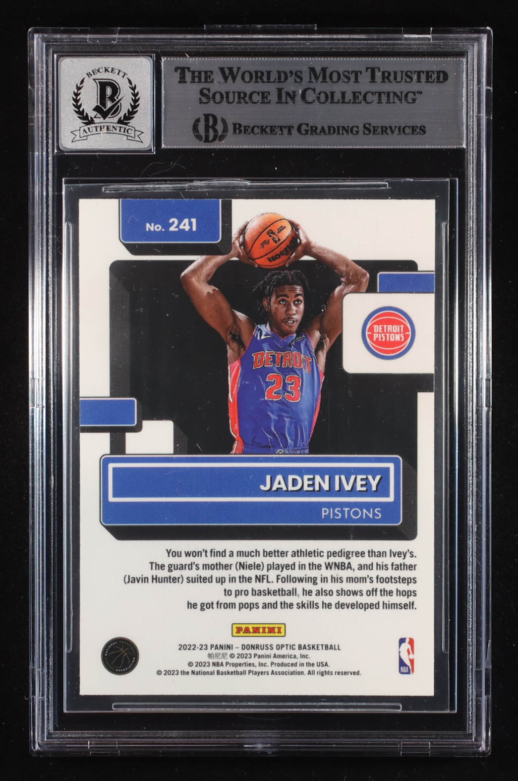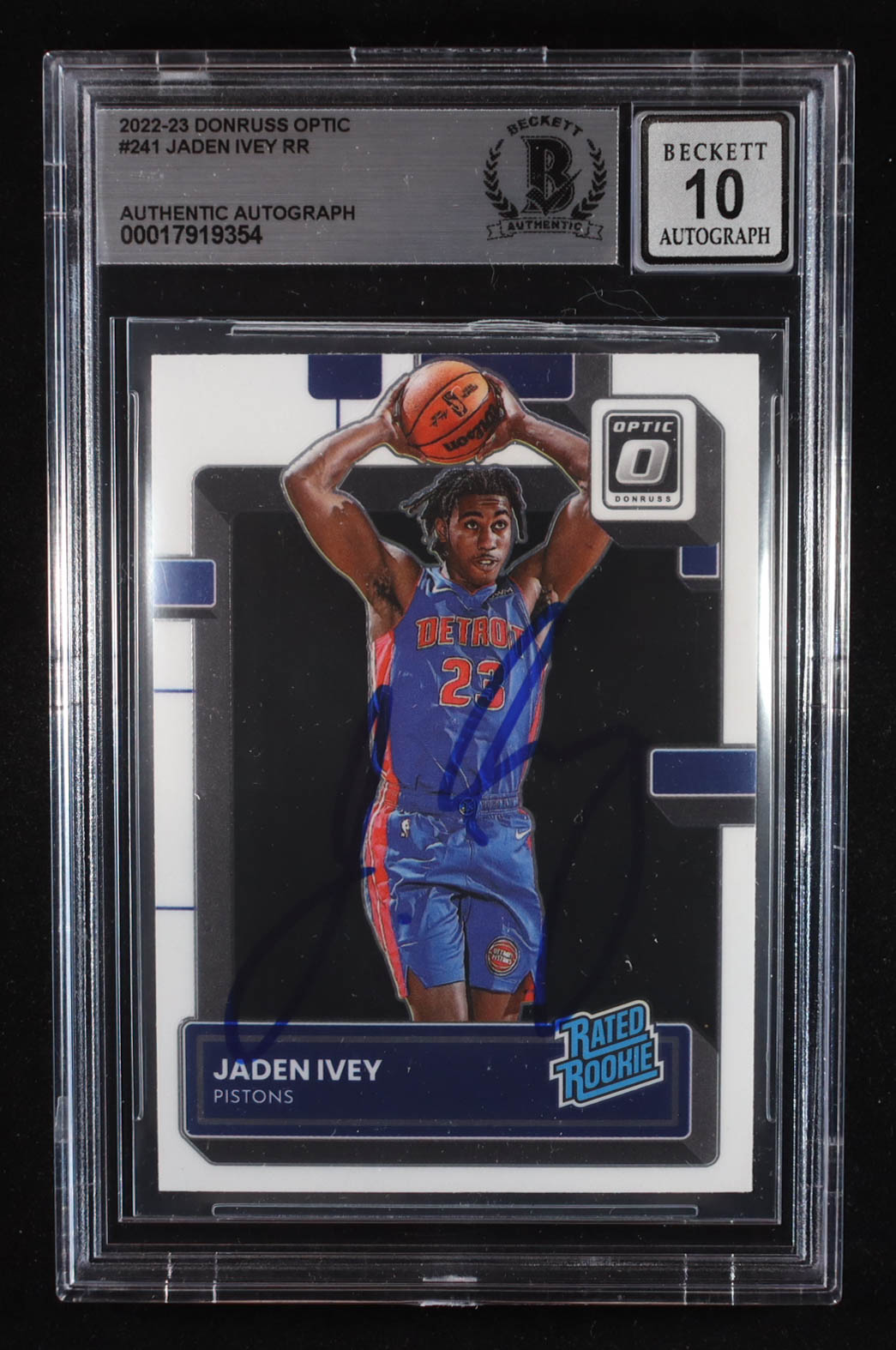 Jaden Ivey Signed 2022-23 Donruss Optic #241 RR RC (Beckett | Auto Grade BGS 10)
