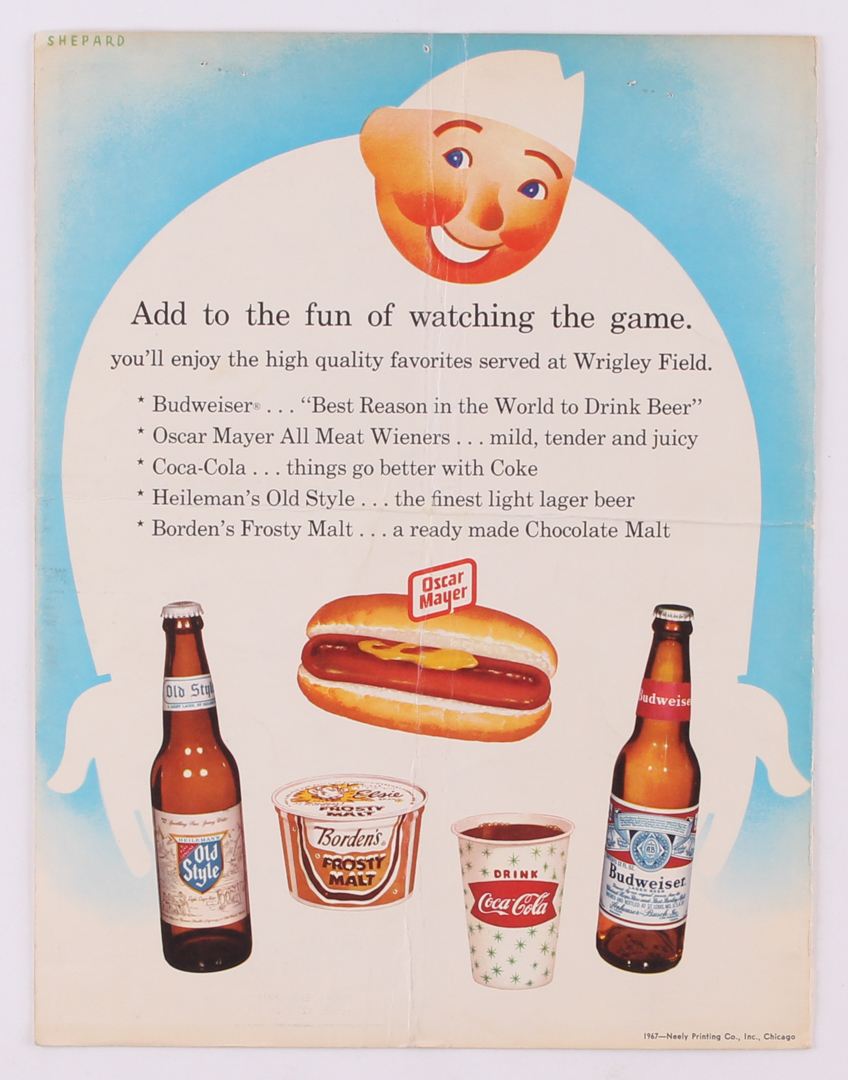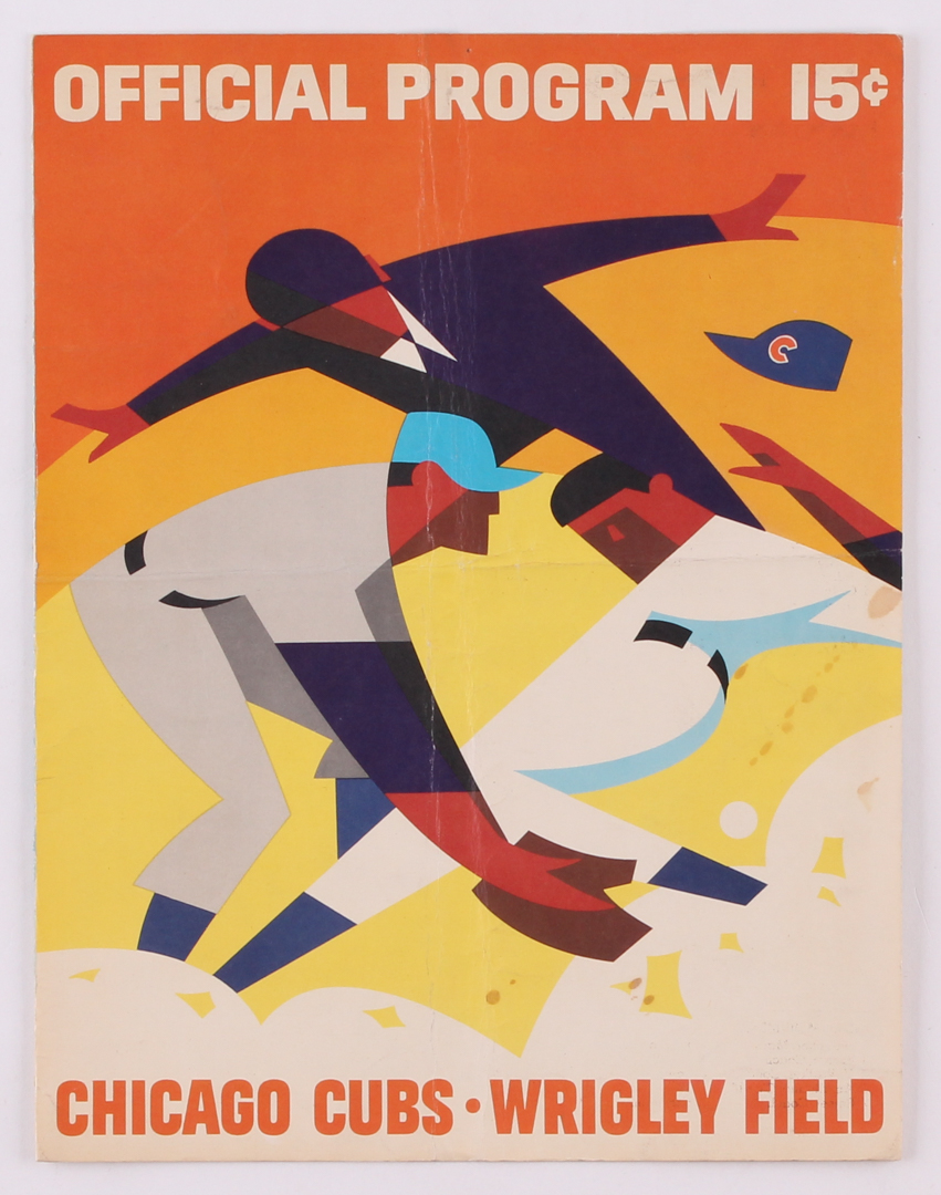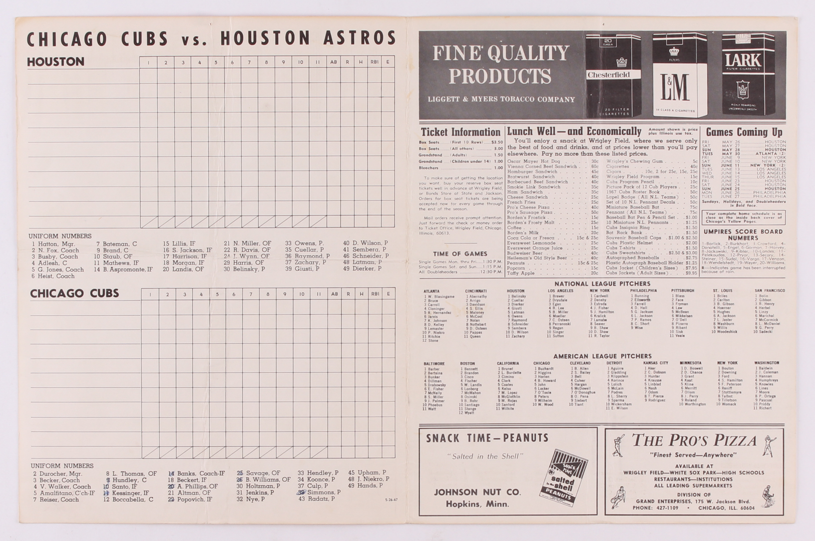 Vintage 1967 Chicago Cubs vs Houston Astros baseball program. Please note, the program shows signs of wear due to aging and creasing.