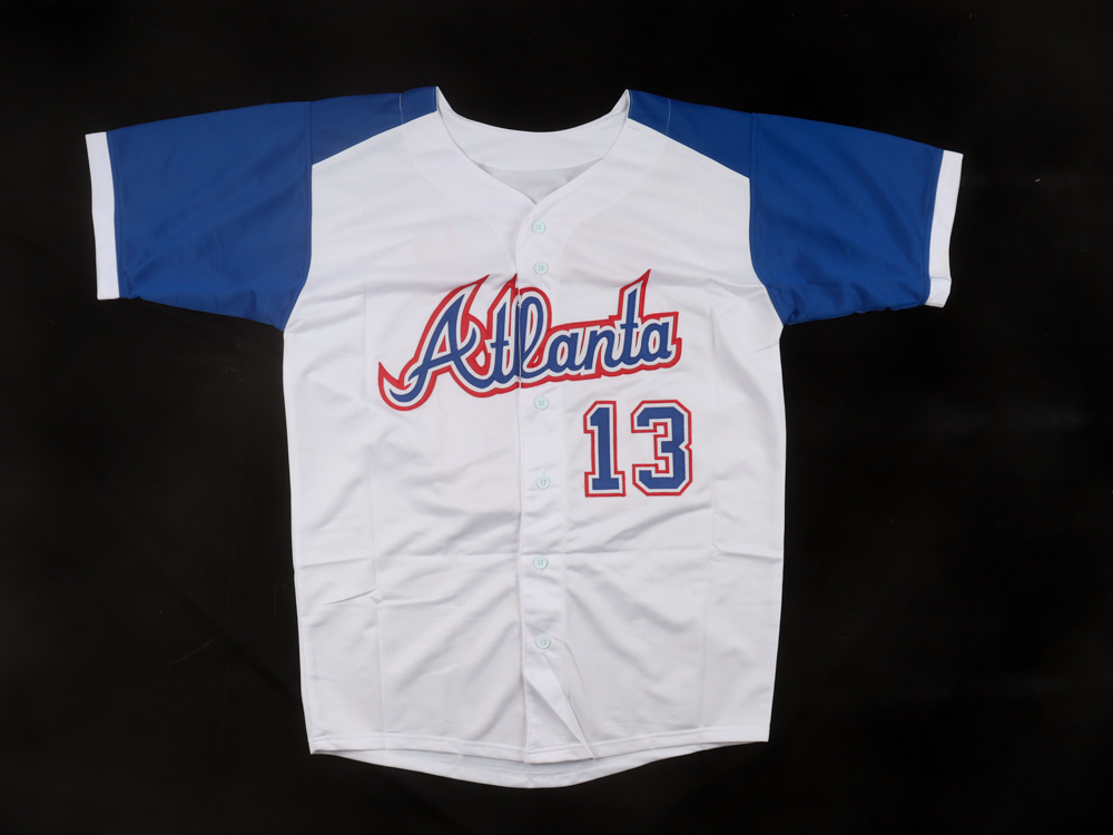 Custom jersey with everything sewn on, size XL. Hand-signed by Ronald Acuna Jr..