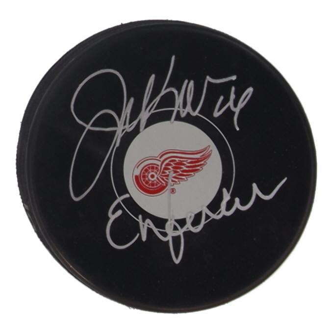Detroit Red Wings Logo Hockey Puck. Hand-signed by Joe Kocur.