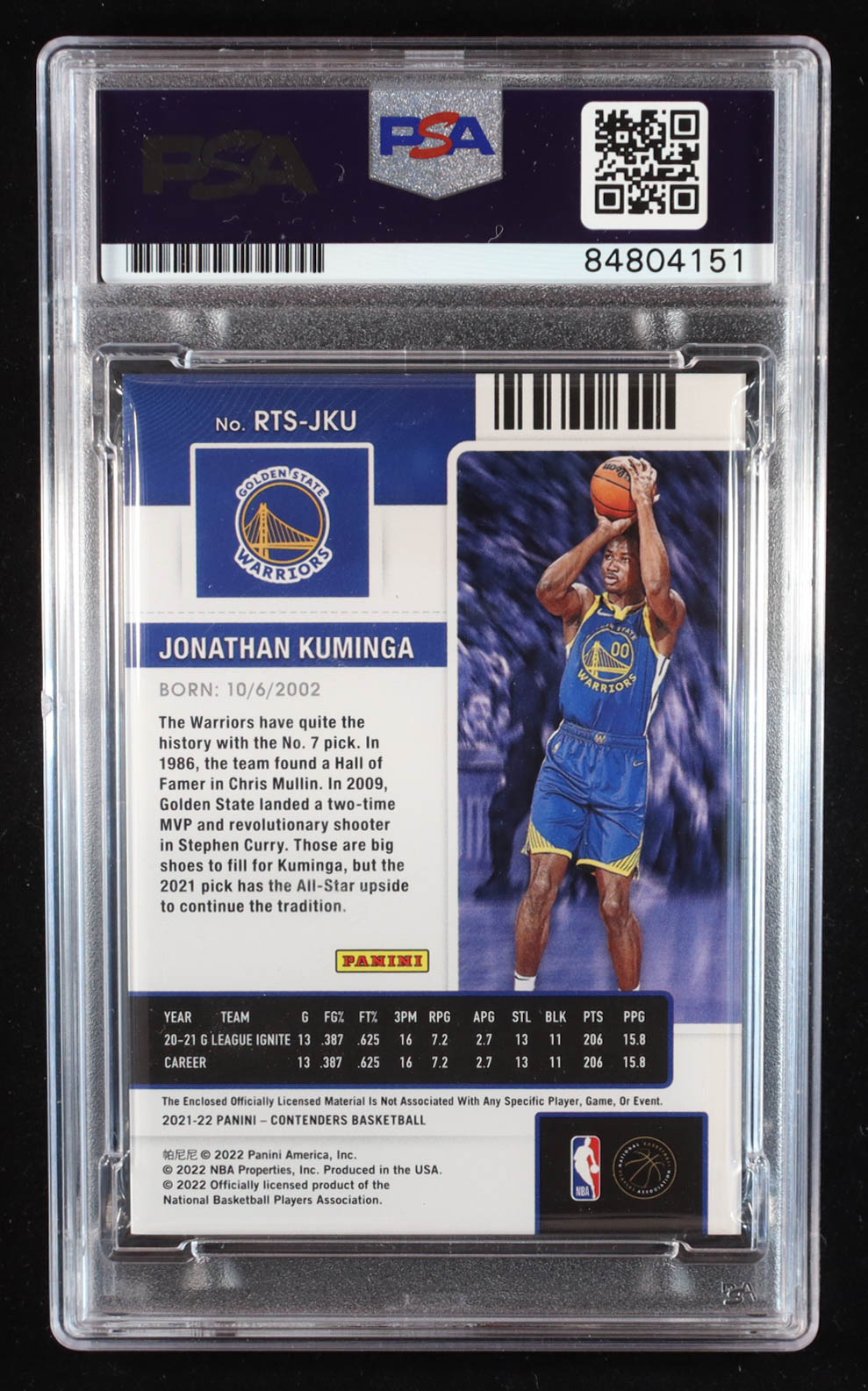 Jonathan Kuminga Signed 2021-22 Panini Contenders Rookie Ticket Swatches Green Ice #7 RC (PSA | Auto Grade PSA 10)