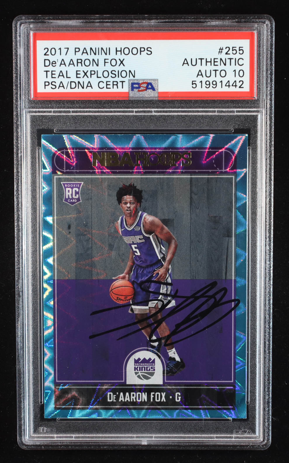 De'Aaron Fox Signed 2017-18 Hoops Teal Explosion #255 RC (PSA | Auto Grade PSA 10)