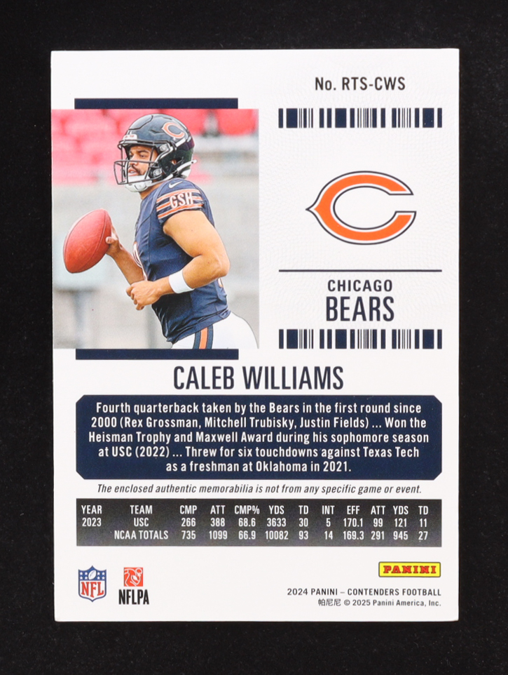 Caleb Williams 2024 Panini Contenders Rookie Ticket Patch #RTS-CWS RC