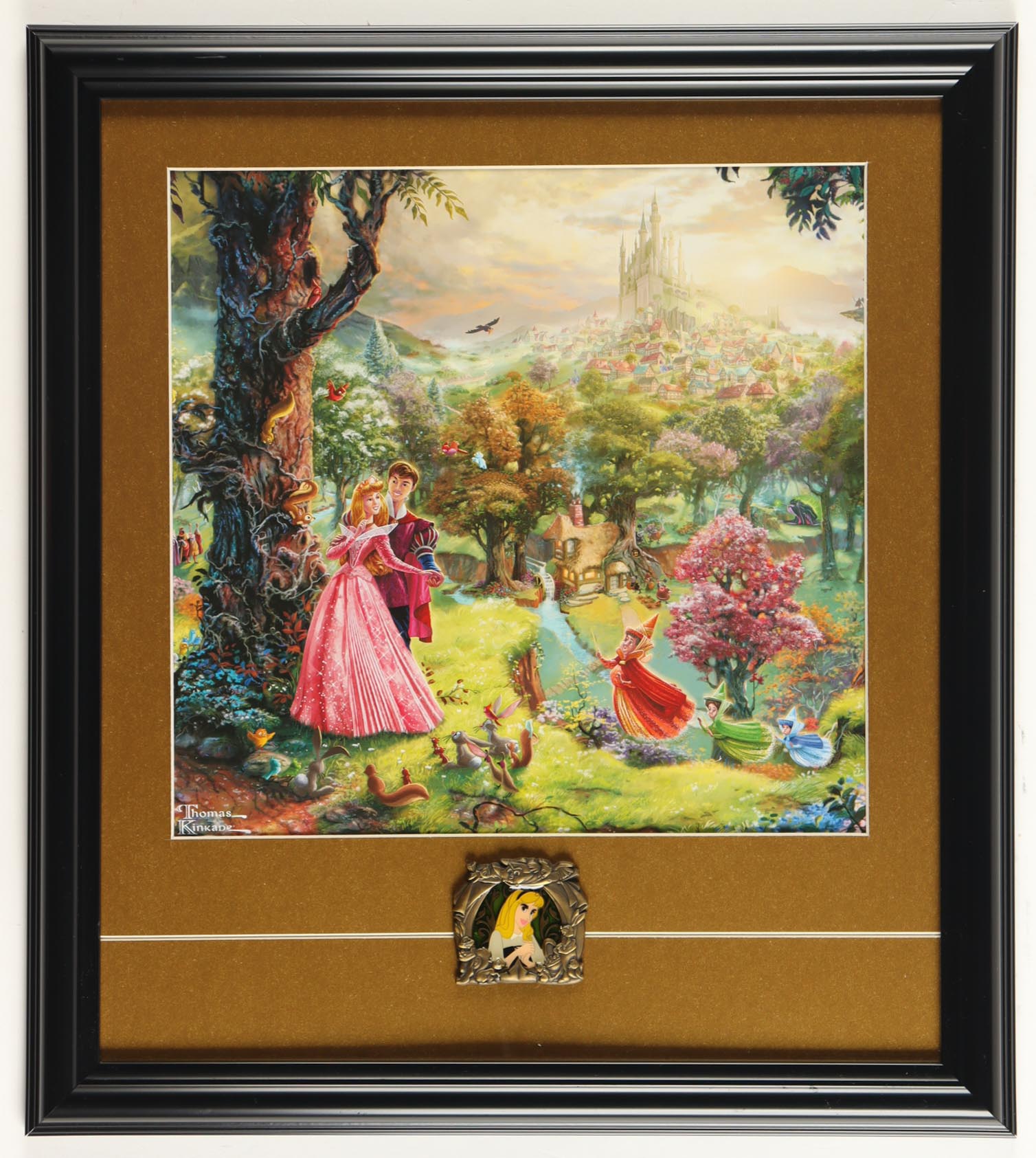 Thomas Kinkade Walt Disney's "Sleeping Beauty" Custom Framed Print Display with Aurora Pin