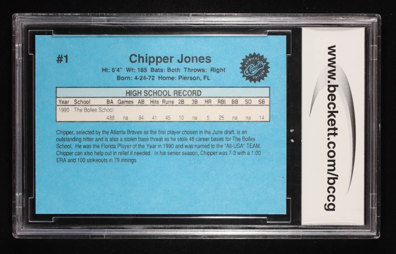 Chipper Jones 1990 Classic Draft Picks #1 RC (BCCG 10)