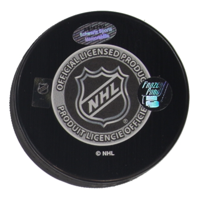 Montreal Canadiens logo hockey puck. Hand-signed by Guy Lapointe (HOF).