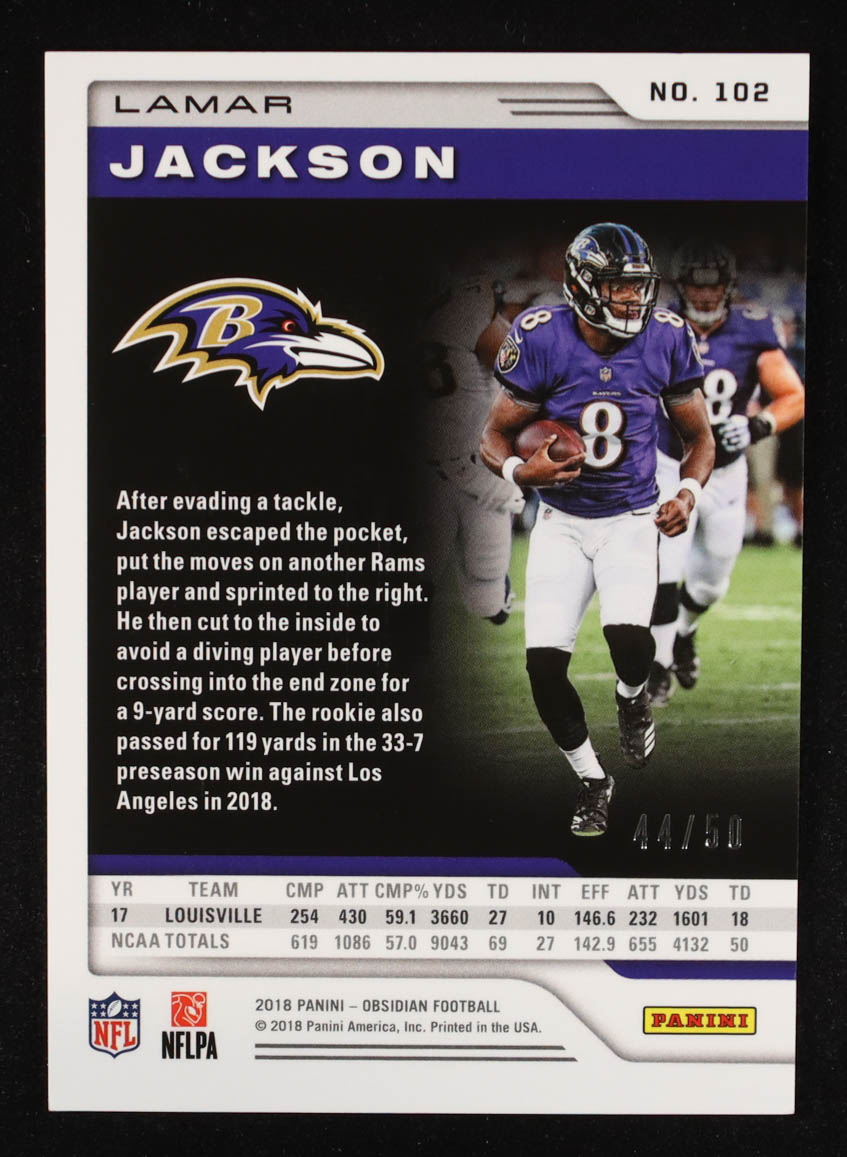 Lamar Jackson 2018 Panini Obsidian Electric Etch Orange #102 RC #44/50