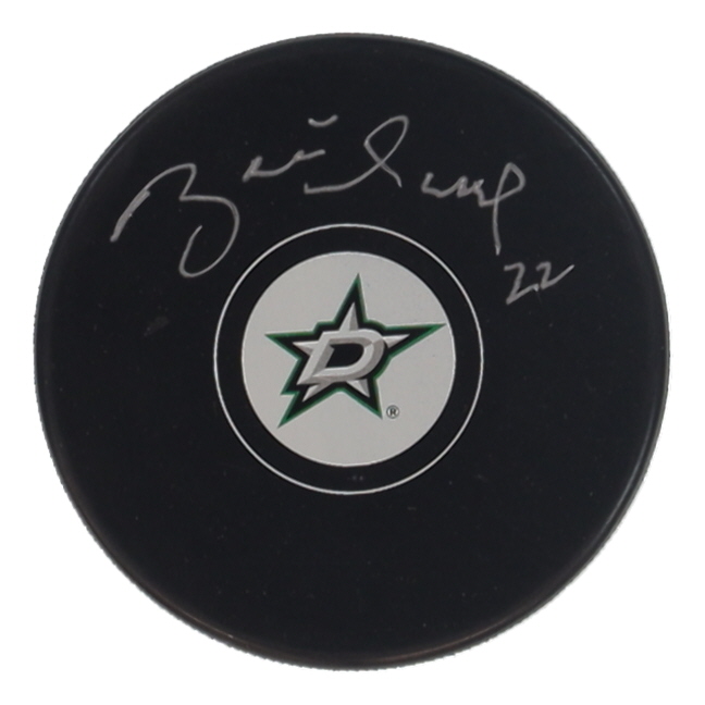 Dallas Stars Logo Hockey Puck. Hand-signed by Brett Hull (HOF).
