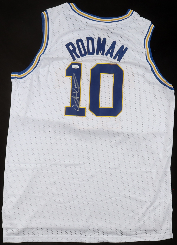 Custom jersey with everything sewn on, size XL. Hand-signed by Dennis Rodman (HOF).