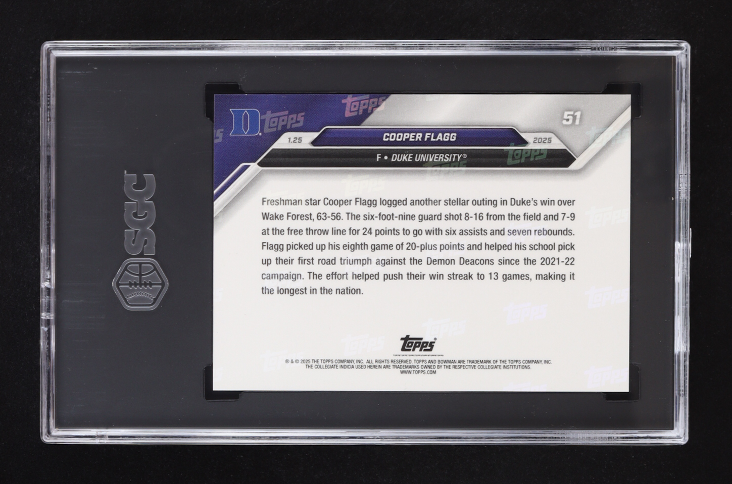 Cooper Flagg 2024-25 Bowman University Now #51 RC (SGC 10)