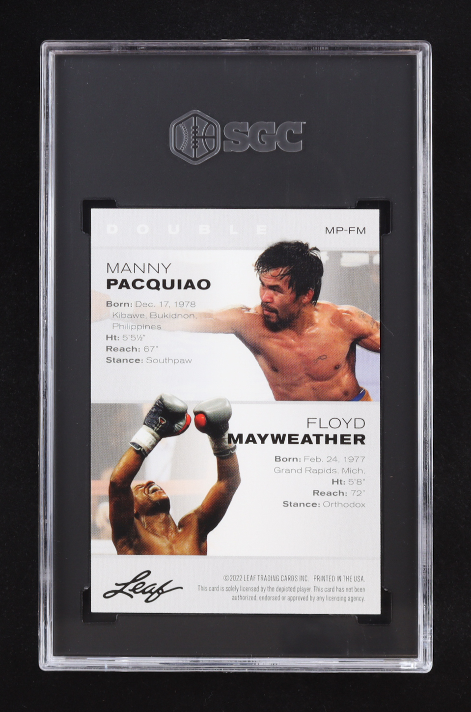 Manny Pacquaio / Floyd Mayweather 2022 Leaf Special Release Exclusive Legends #MPFM (SGC 10)