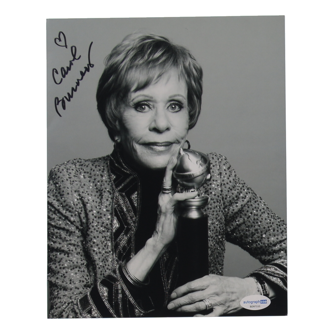 Photo measures 8" x 10" in size and has been hand-signed by Carol Burnett.