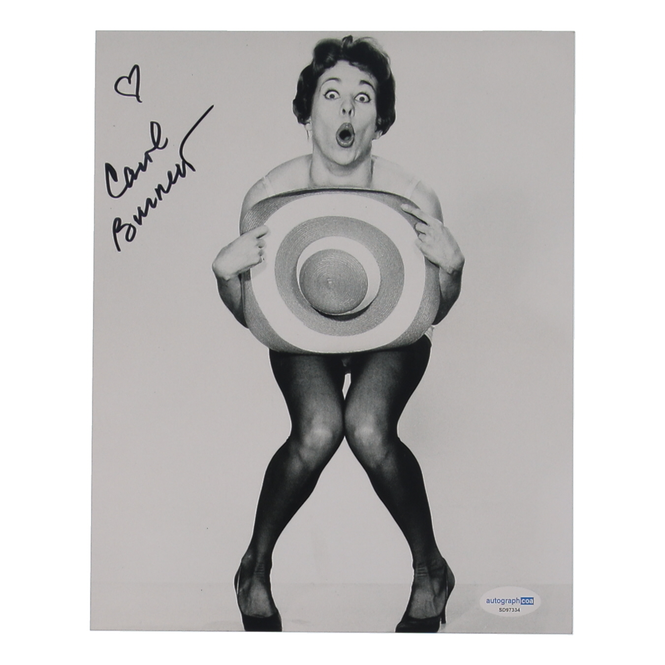 Photo measures 8" x 10" in size and has been hand-signed by Carol Burnett.
