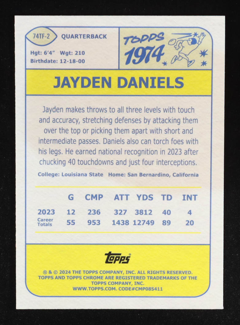 Jayden Daniels 2024 Topps Chrome '74 Topps #74TF2 RC