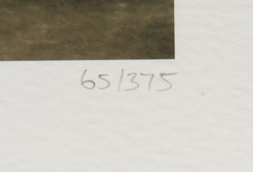 Measures approximately 16" x 22.5" in size. The item is limited edition and you will receive a uniquely numbered of the 375 produced.