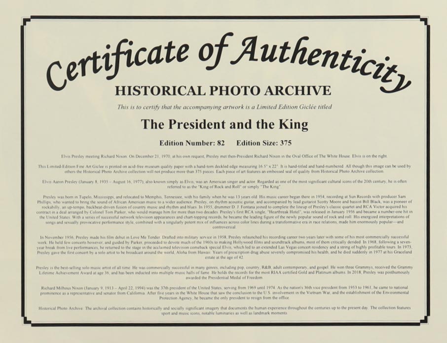 Historical Photo Archive - "The President and the King" 1970 Limited Edition 16x22.5 Fine Art Giclee on Paper # 82 /375