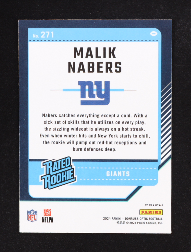 Malik Nabers 2024 Donruss Optic Purple Shock #271 RR RC