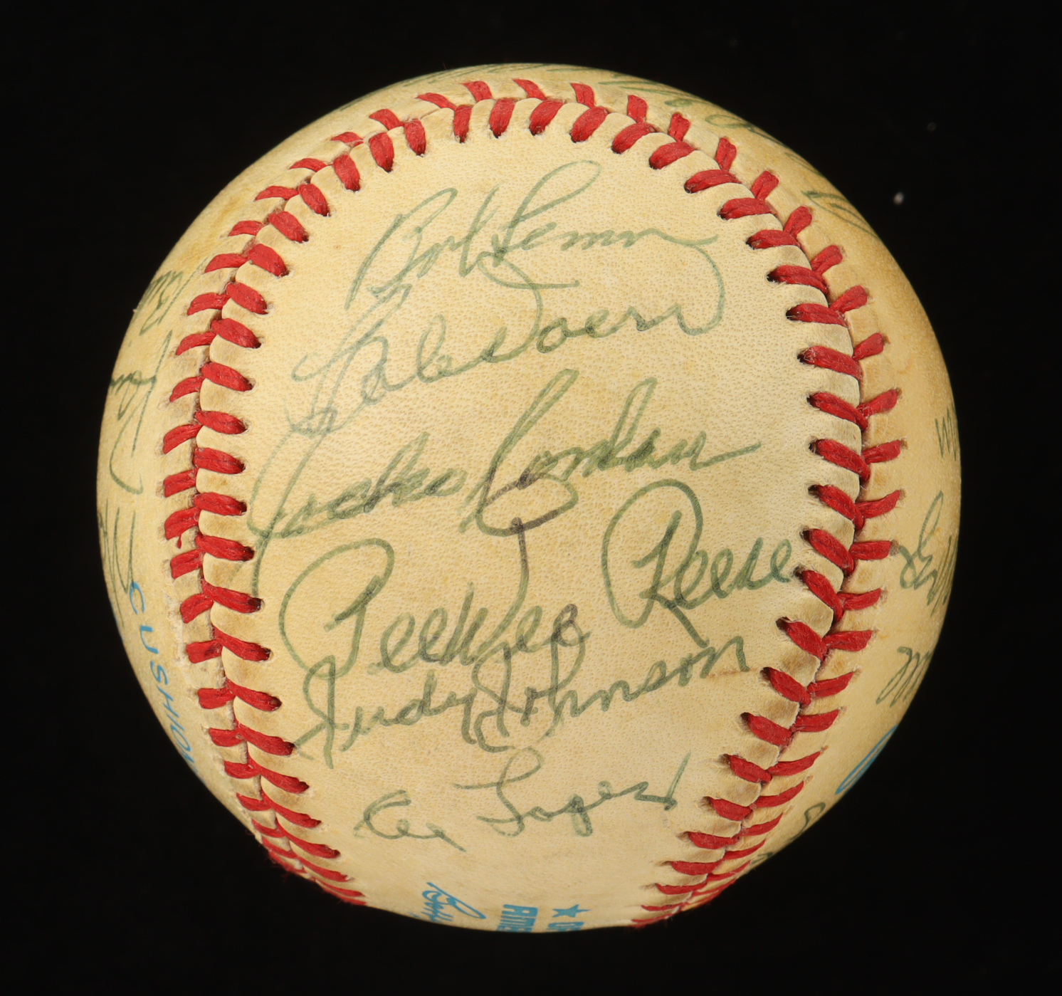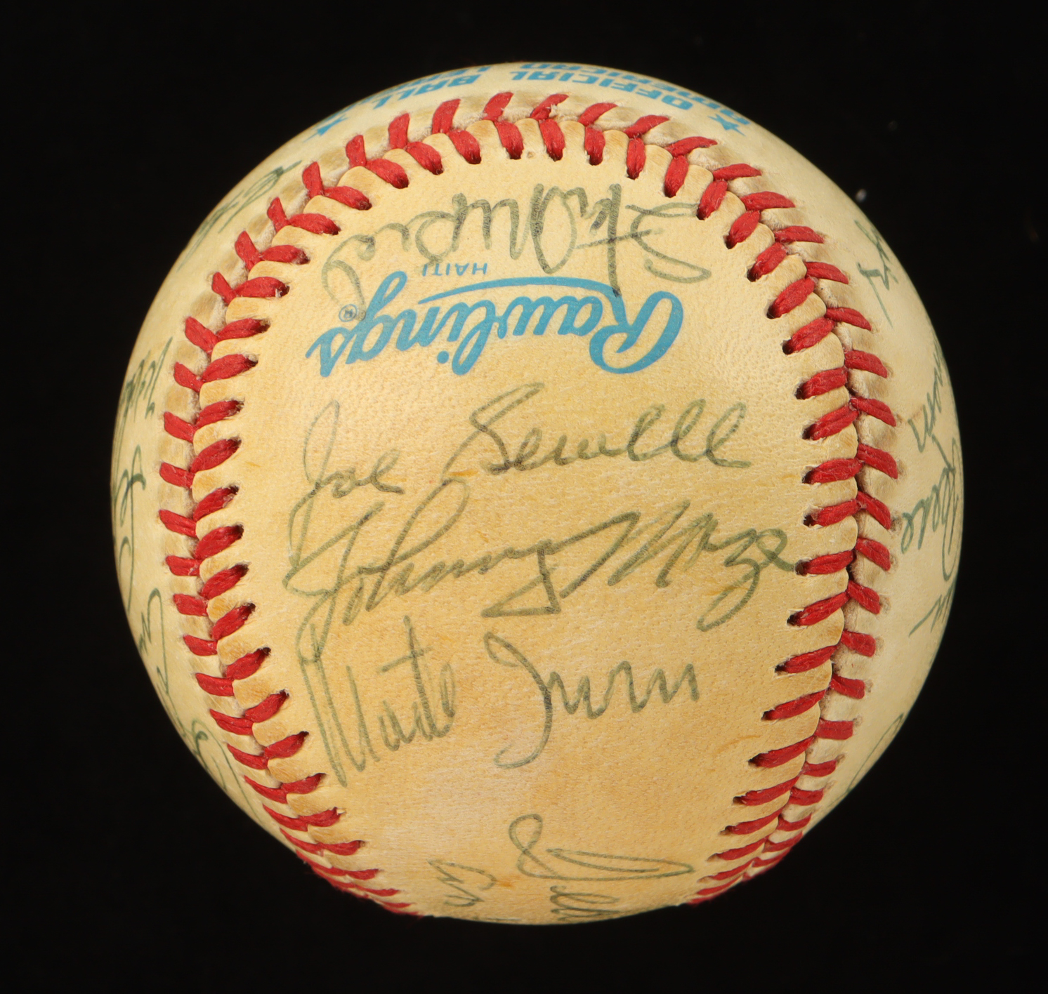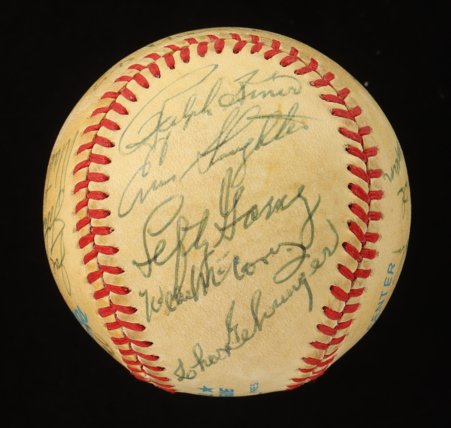 Baseball Hall of Famers OAL Baseball Signed by (20) with Ted Williams, Warren Spahn, Enos Slaughter, Lefty Gomez (Beckett)